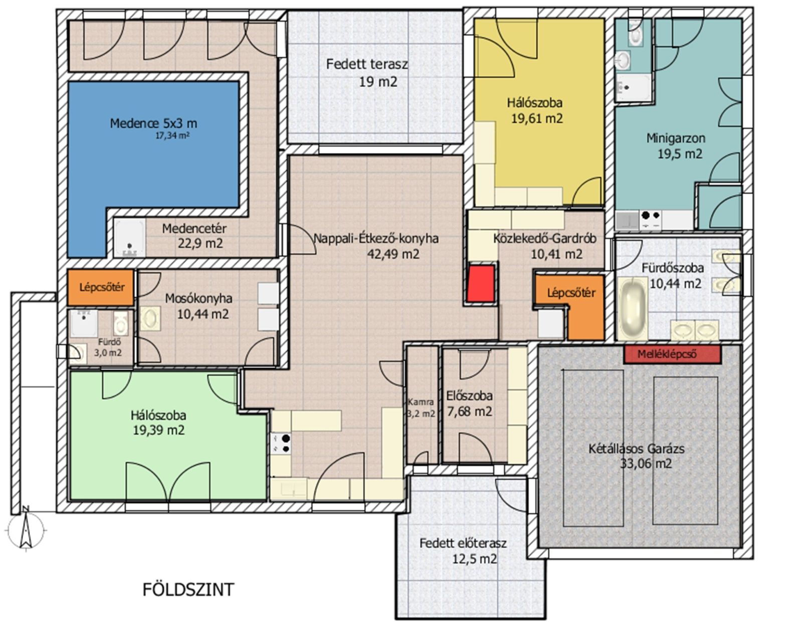 Az ingatlan különleges eleme a fedett, fűthető, ellenáramoltatós medence, amely egész évben biztosítja a wellness élményt, az otthon kényelmén belül.