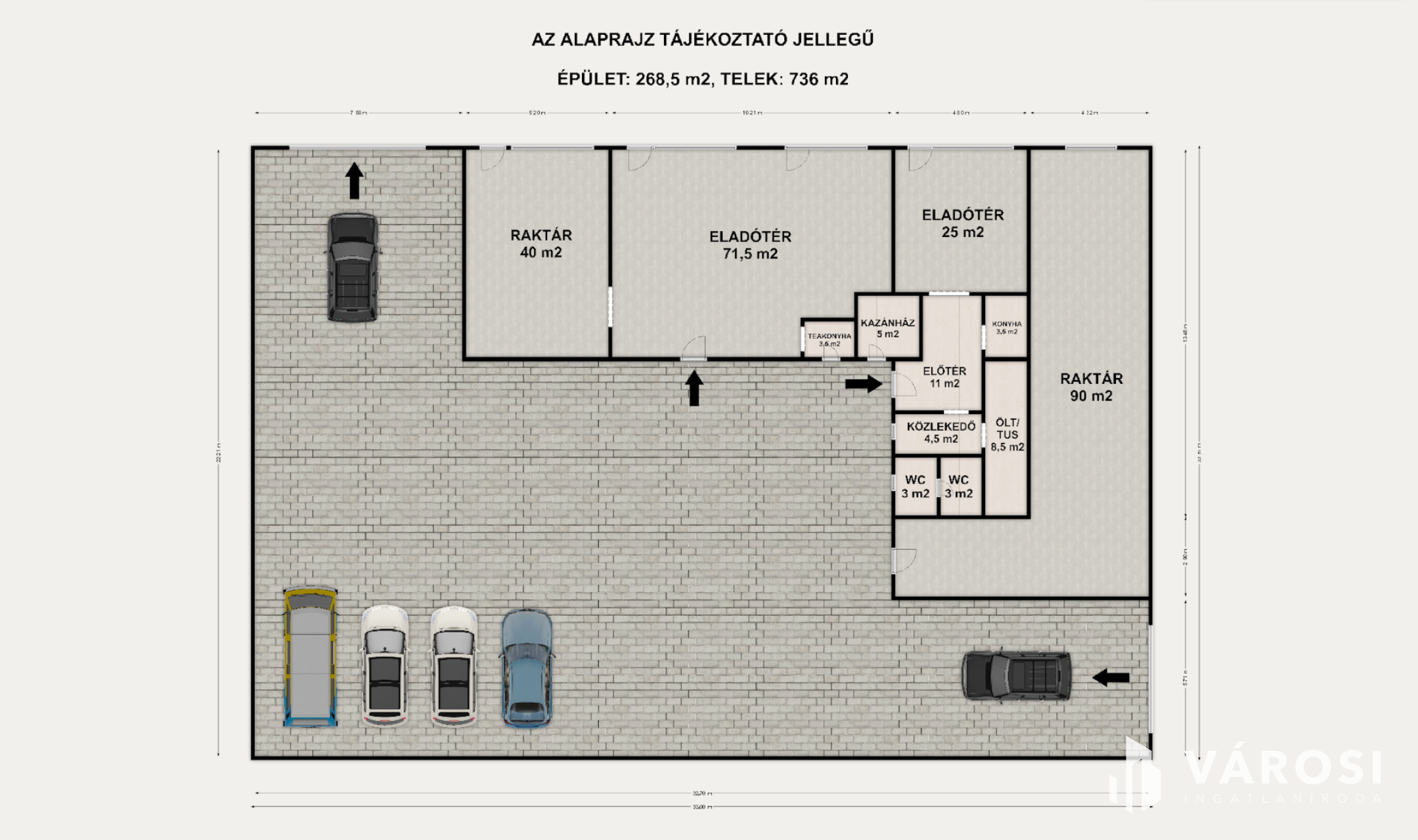 + Eladótér (71,5 m2) + raktár (40 m2)
