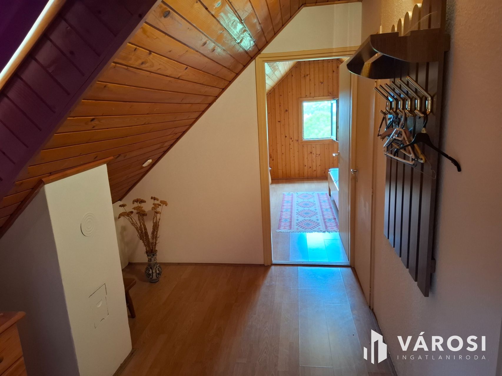 Csendes, zöldövezeti környezetben,3785 m²-es telken található ez a kétszintes, 90 m²-es nyaraló. A földszinten nappali–konyha–étkező, az emeleten két hálószoba, külön fürdő és WC szolgálja a kényelmet. Az ingatlan berendezett, fa zsalugáteres ablakokkal, vezetékes vízzel, szennyvíz-elhelyezéssel, új villamoshálózattal és 3 fázisú árammal rendelkezik.