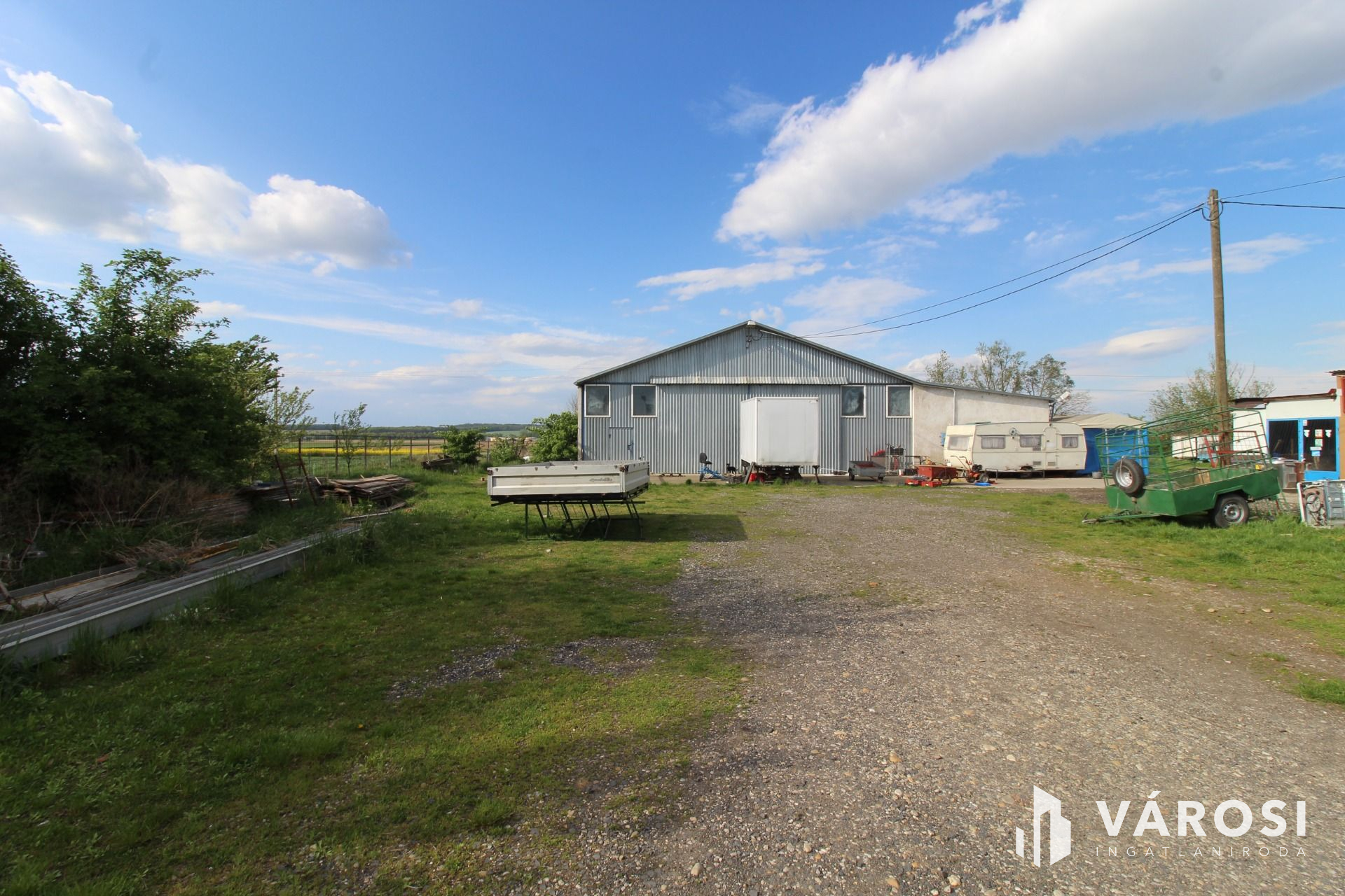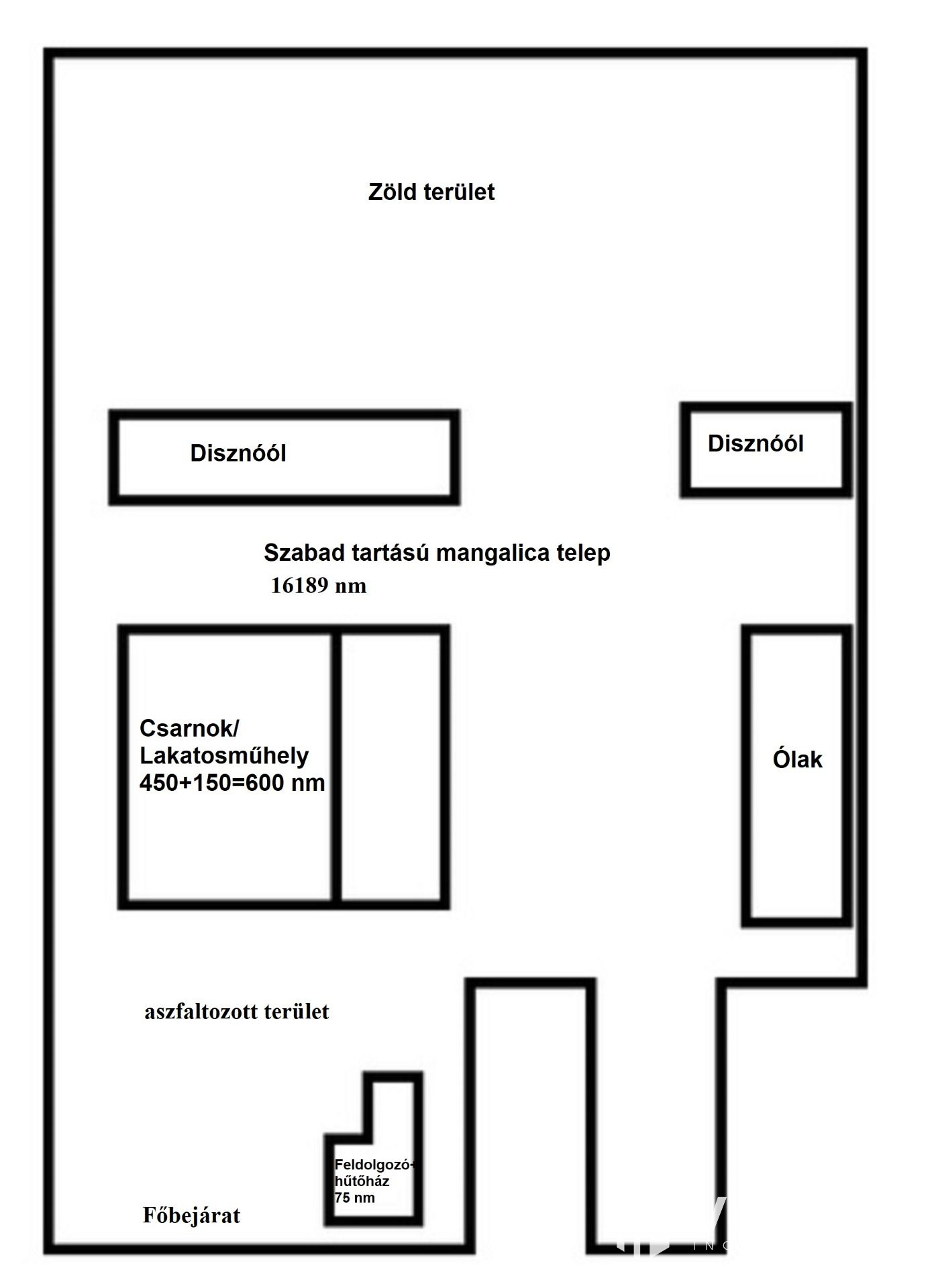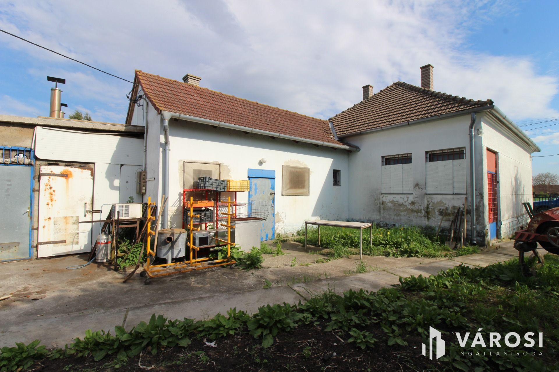 A területen egy jelenleg feldolgozó üzemként, valamint hűtőkamraként szolgáló, 75nm nagyságú családi ház, egy 600 nm hasznos alapterületű csarnok, valamint az állattartáshoz szükséges ólak és létesítmények találhatóak. Az ólak önetetővel és önitató rendszerrel ellátottak. A csarnok régen lakatosműhelyként funkcionált, az ehhez tartozó engedélyek a mai napig rendezettek, így akár ilyesfajta hasznosítás is megoldható. A családi ház bármikor visszaalakítható állandó lakhatás céljából.