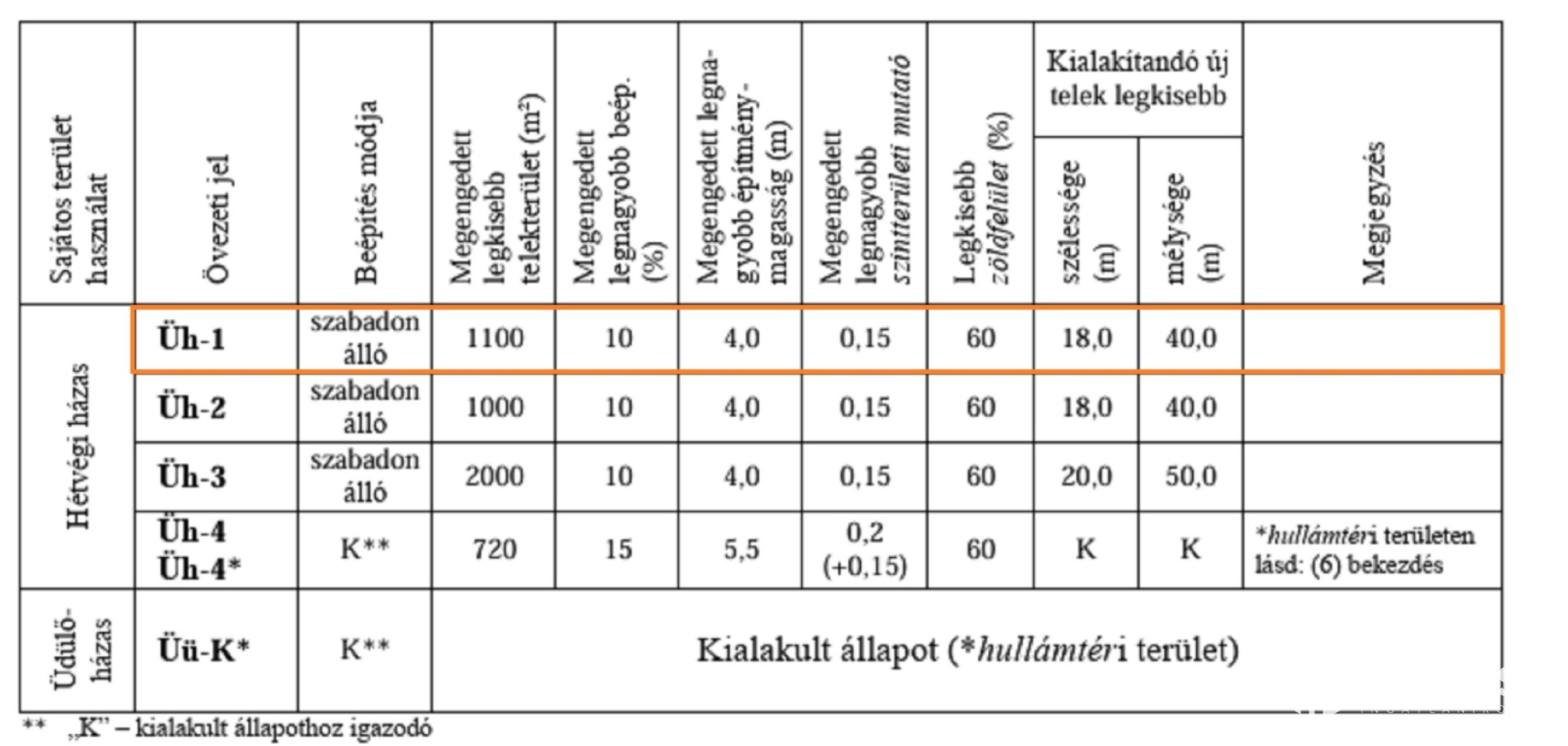 a) Üh- hétvégi házas területek: Üh-1; Üh-2; Üh-3; Üh-4; Üh-4*