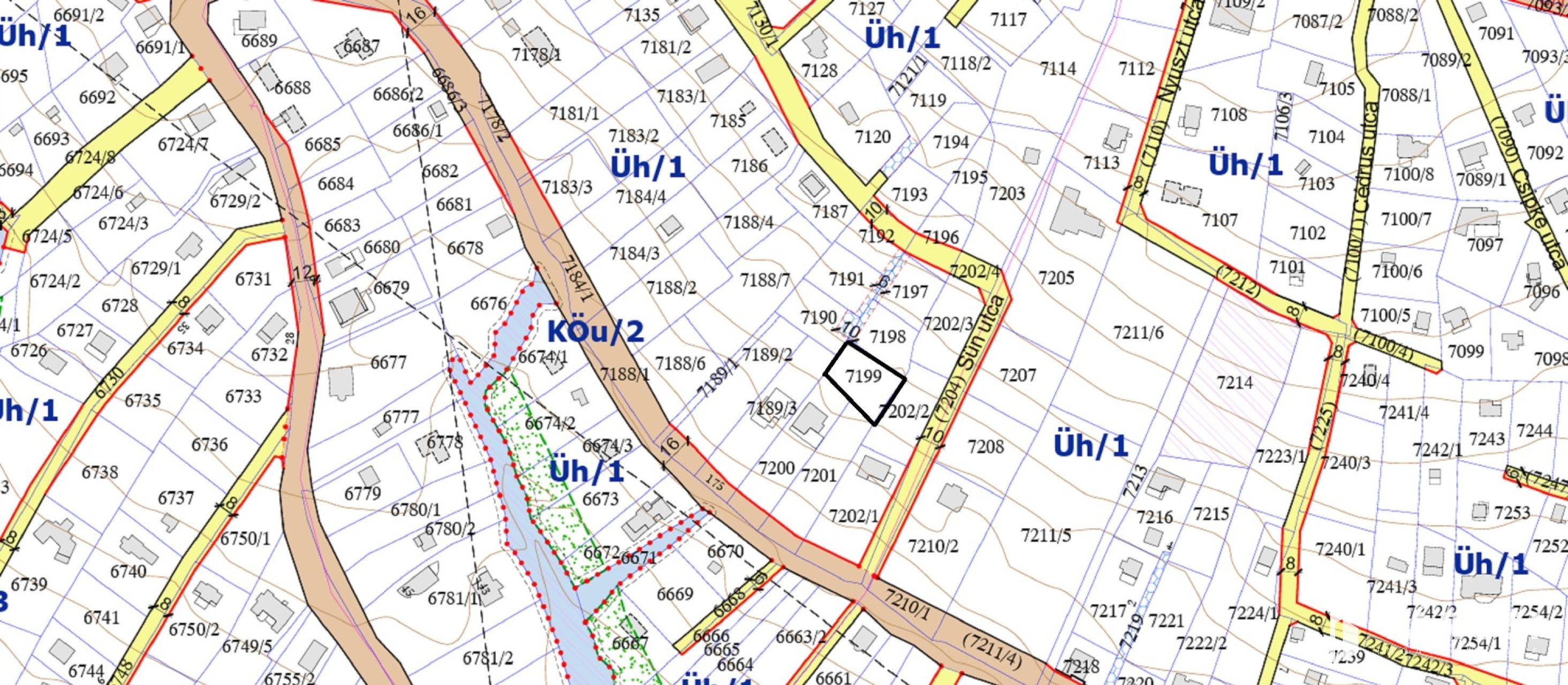 A telek Üh-1 övezeti besorolással mely 30%-os beépíthetőséget engedélyez.