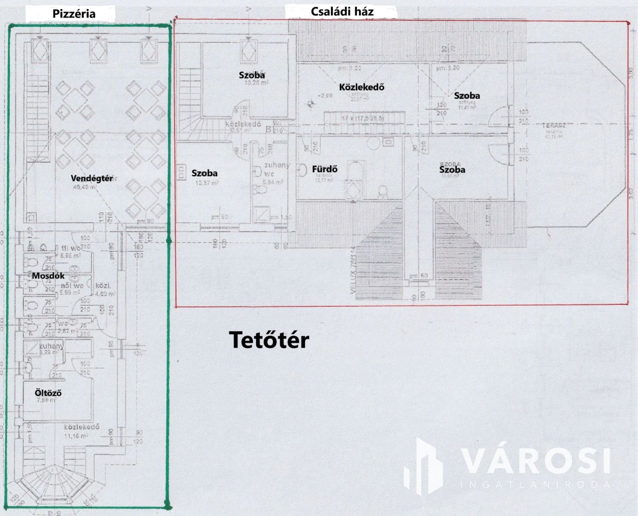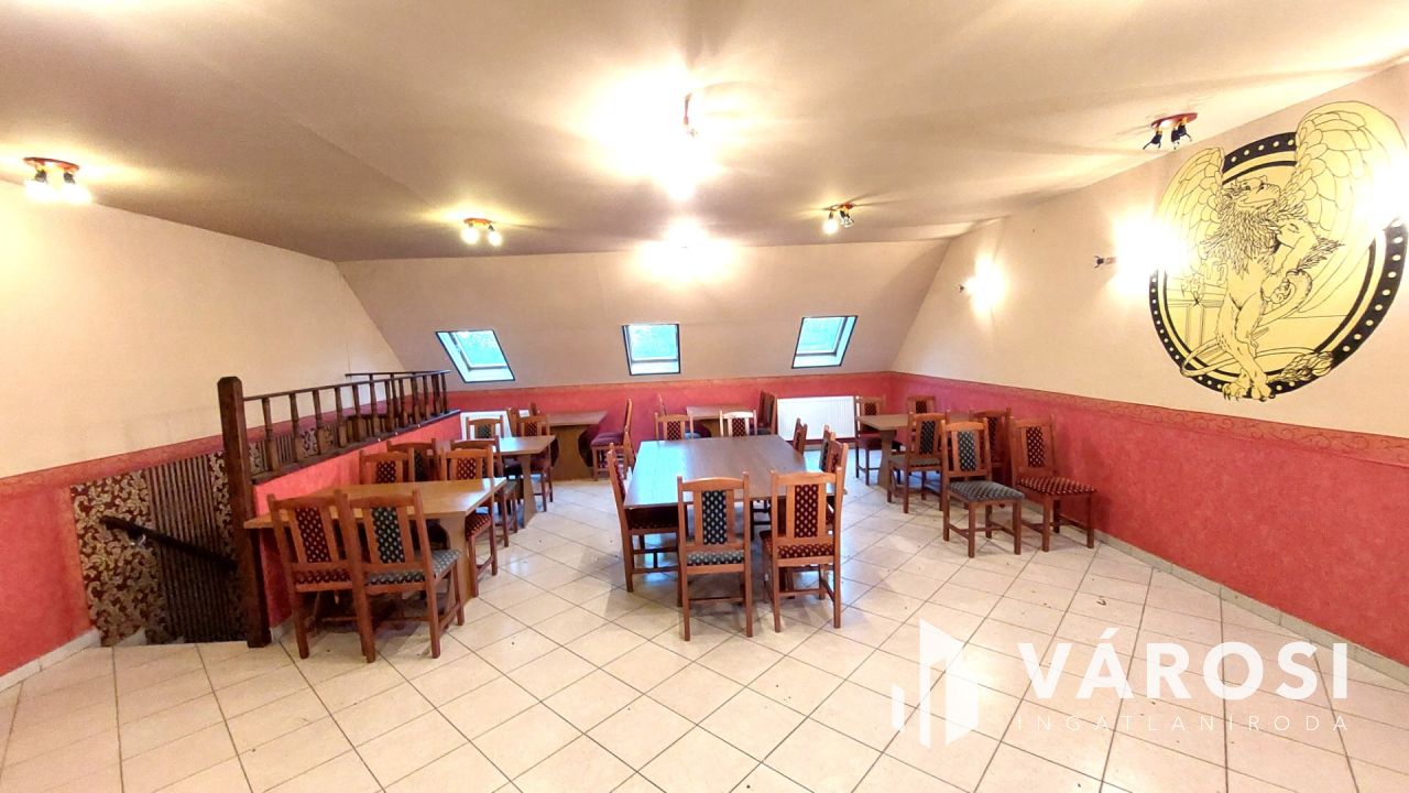 A 200 m2-es pizzéria-vendéglő önálló bejárattal és kerthelyiséggel rendelkezik. Azonnal bérbeadható. Az épületben vendégtér, mosdók és egy nagy méretű pizzakemence található. A vendéglő működtetéséhez szükséges helyiségek jó minőségűek, a hatósági előírásoknak megfelelnek. Az épület akár más jellegű üzleti vállalkozás számára is sokoldalúan hasznosítható.