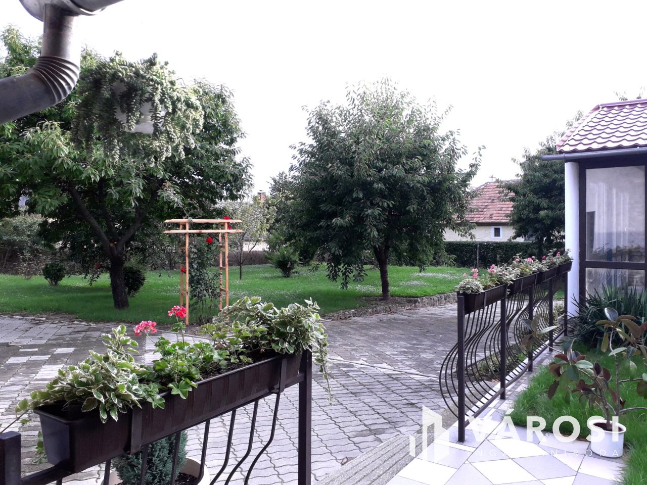 A 1705 m2-es telken fürdőház medencével és melléképületek is vannak.