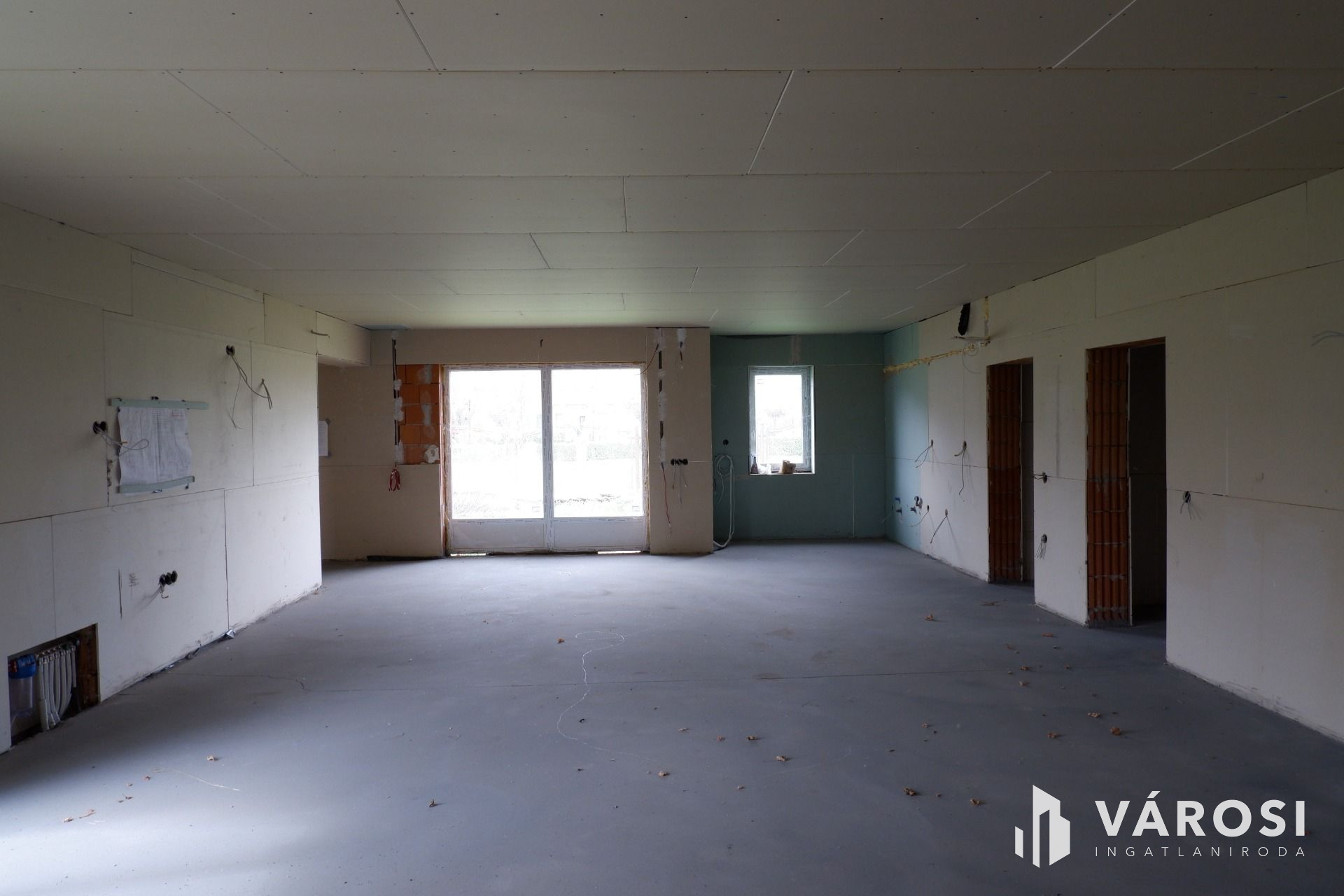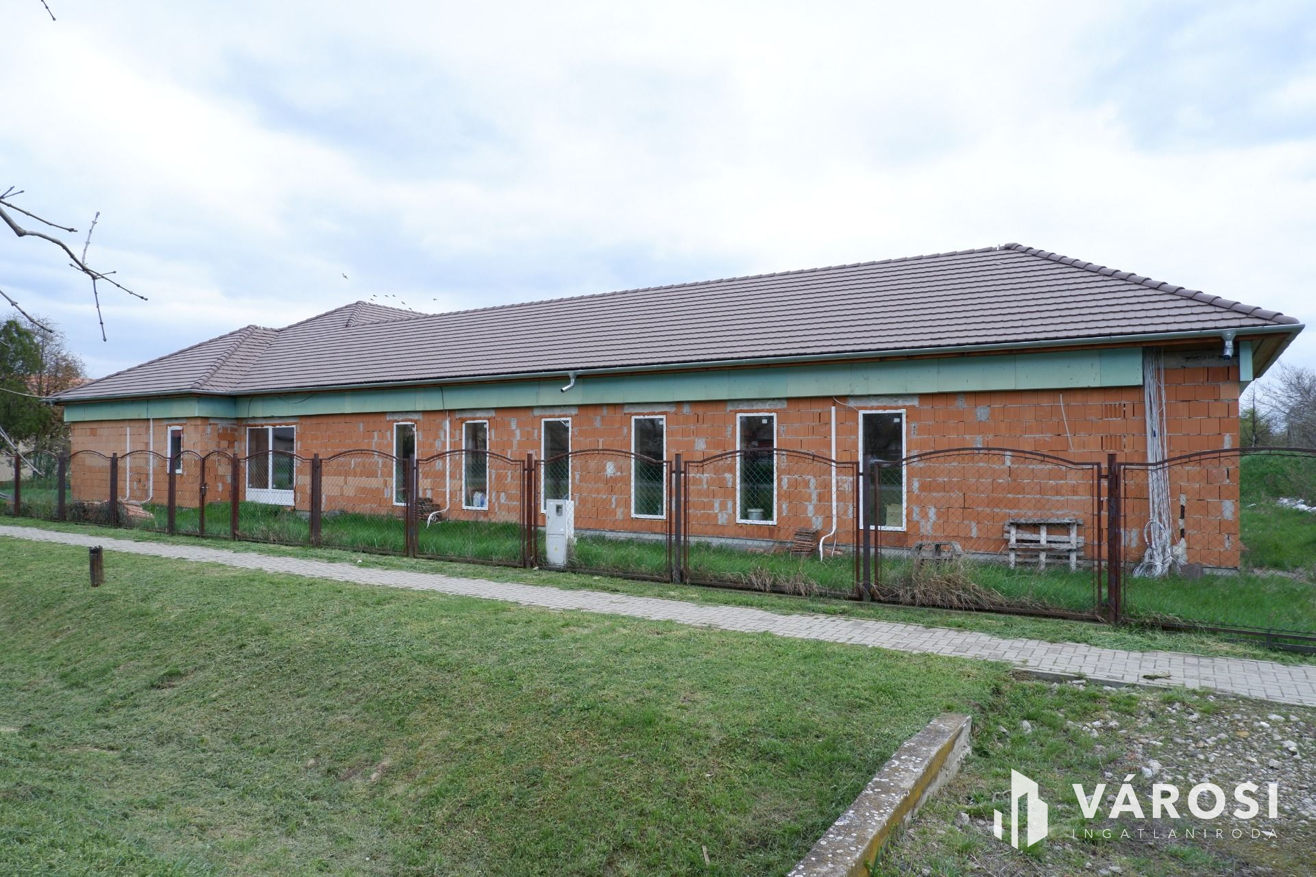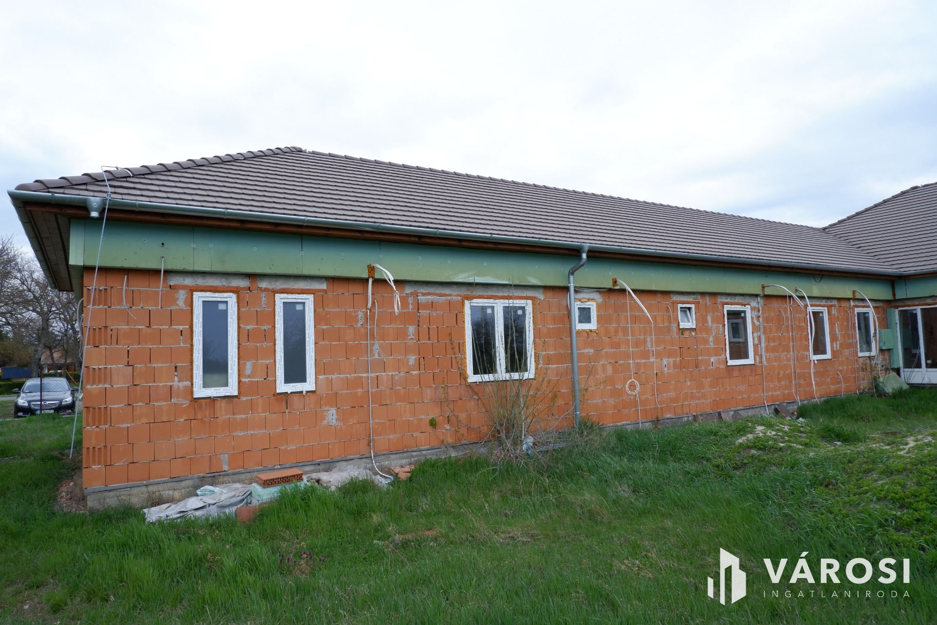 Az épület fő- és válaszfalai elkészültek, a födém, a tető szintén kész, a víz- és csatornarendszer, a klímacsövezés, illetve a villanyszerelés (szerelvények nélkül) kiépítésre kerültek!