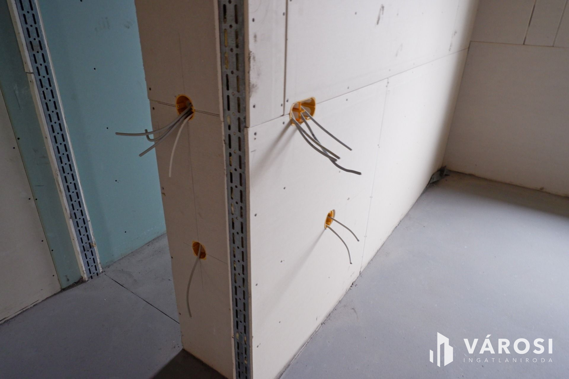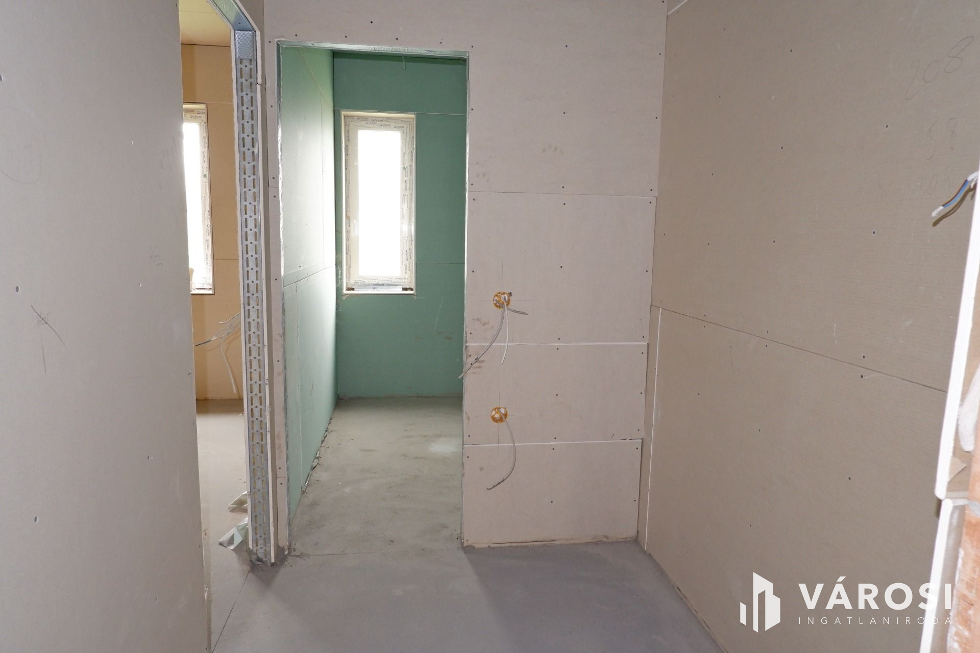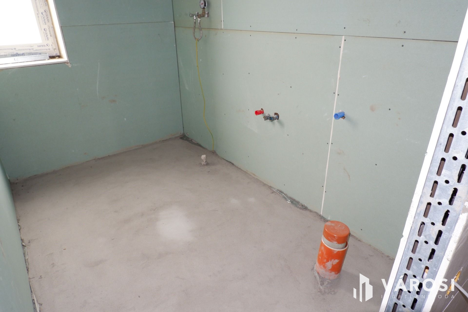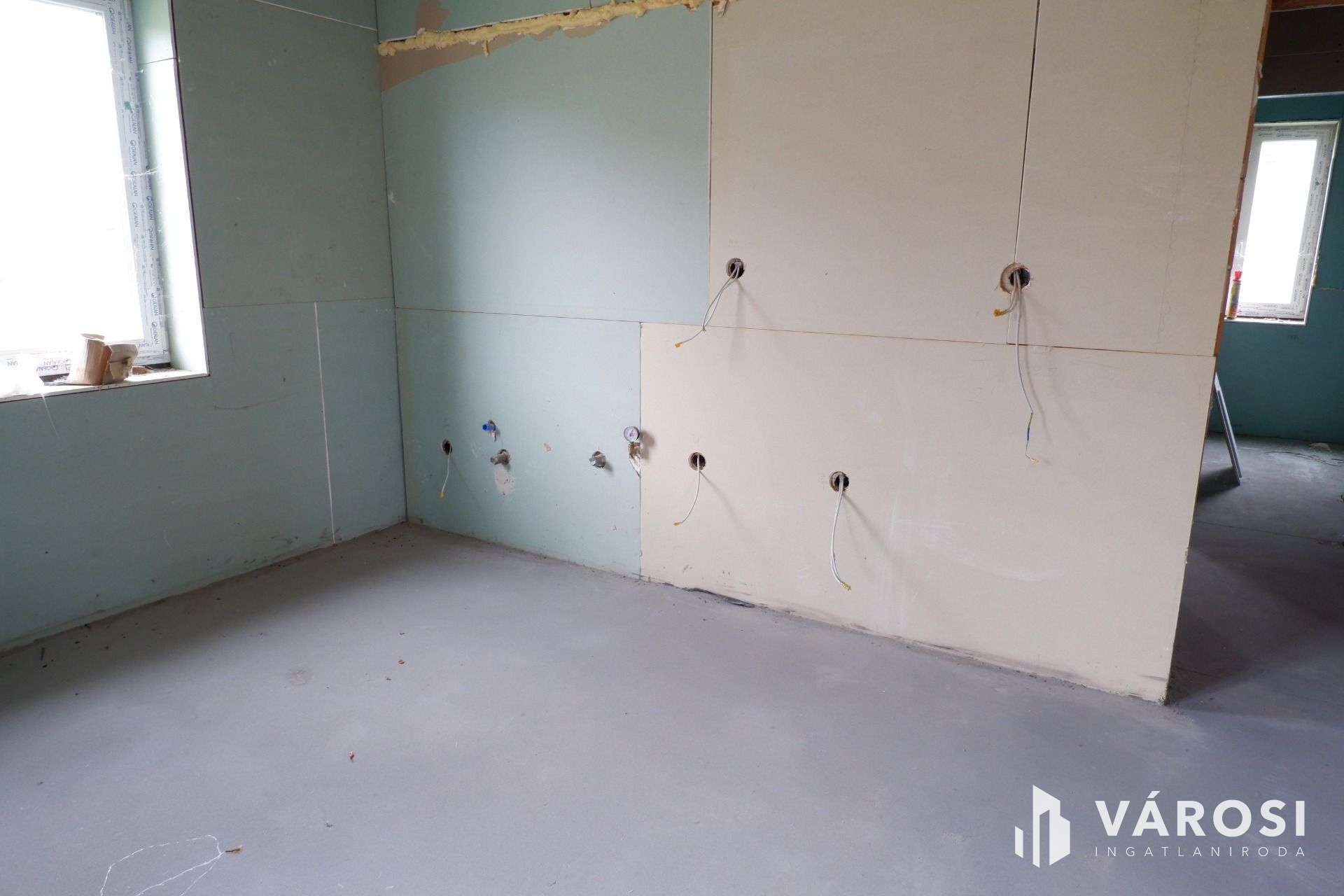 Az épület fő- és válaszfalai elkészültek, a födém, a tető szintén kész, a víz- és csatornarendszer, a klímacsövezés, illetve a villanyszerelés (szerelvények nélkül) kiépítésre kerültek!