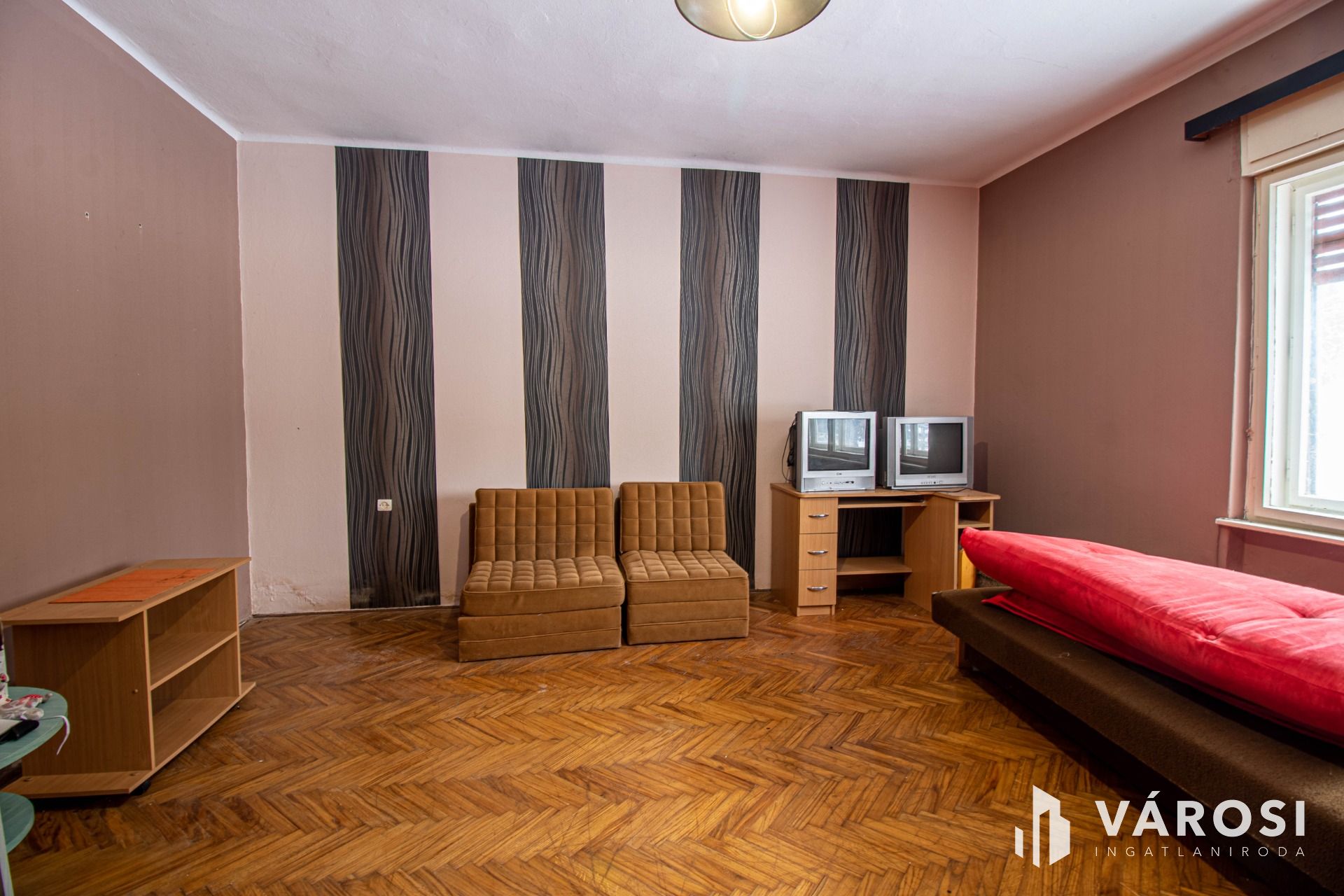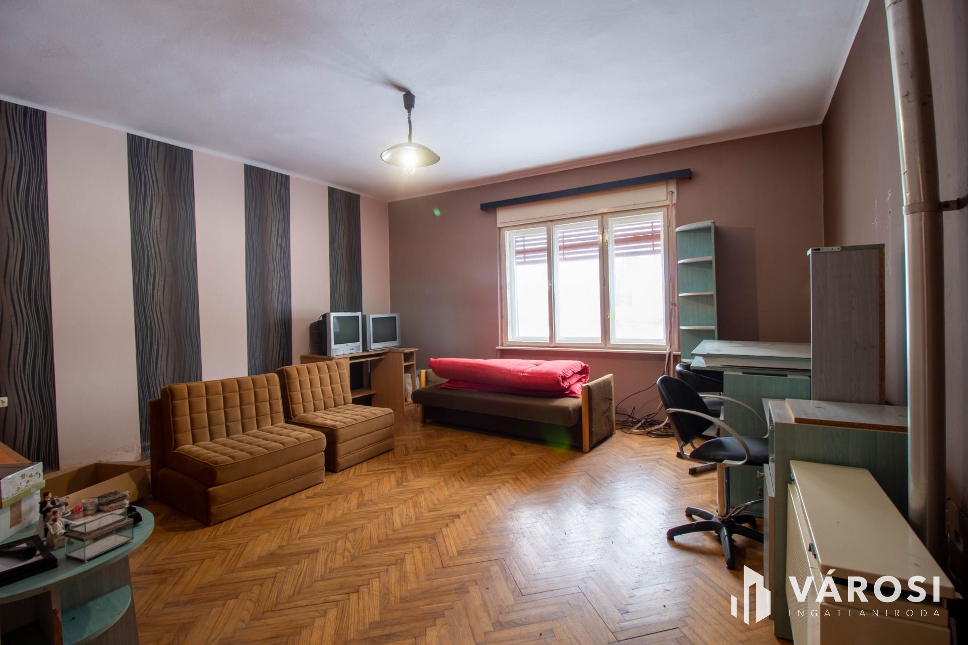 Az ingatlan sík, közel 1500 nm nagyságú területen fekszik, melyen régebbi melléképületek is helyet kaptak. A melléképületek jelentős ráfordítást igényelnek. Az épület átlagos állapotú, akár jelen állapotában is alkalmas lakhatásra, de korszerűsítés után valóban kiváló élettér alakítható ki benne. A ház alapja beton, falazata stabil. A helyiségek fűtéséről konvektorok gondoskodnak. Az utcafronti szobák alatt tágas, száraz pince húzódik. A lakótér helyiségei: 4 teljes értékű szoba, konyha, fürdőszoba, közlekedő, kamra, terasz. A 4 szoba akár nagyobb család számára is megfelelő, tágas otthont biztosíthat. Az ingatlan nem lakott, így adásvétel után rövid időn belül birtokba vehető.