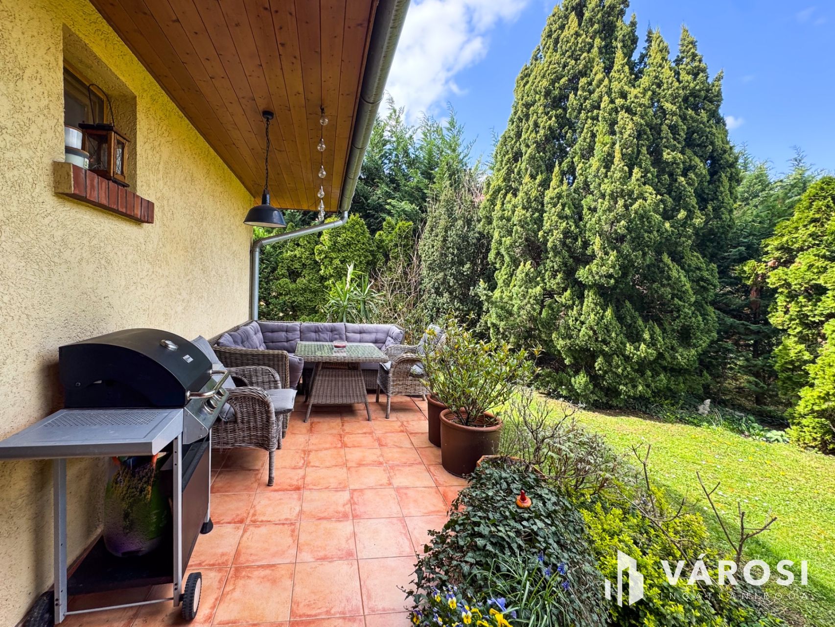 Az ingatlanban 5 hálószoba, 1 dolgozószoba, 1 nappali és 2 fürdőszoba található. Az épület kiváló állapotban van, padlófűtés és klíma biztosítja a komfortot, míg a külső hőszigetelés az energiatakarékosságot garantálja. A kertkapcsolattal rendelkező terasz és az egyedi kialakítású télikert tökéletes helyszín a pihenésre és a családi összejövetelekre.