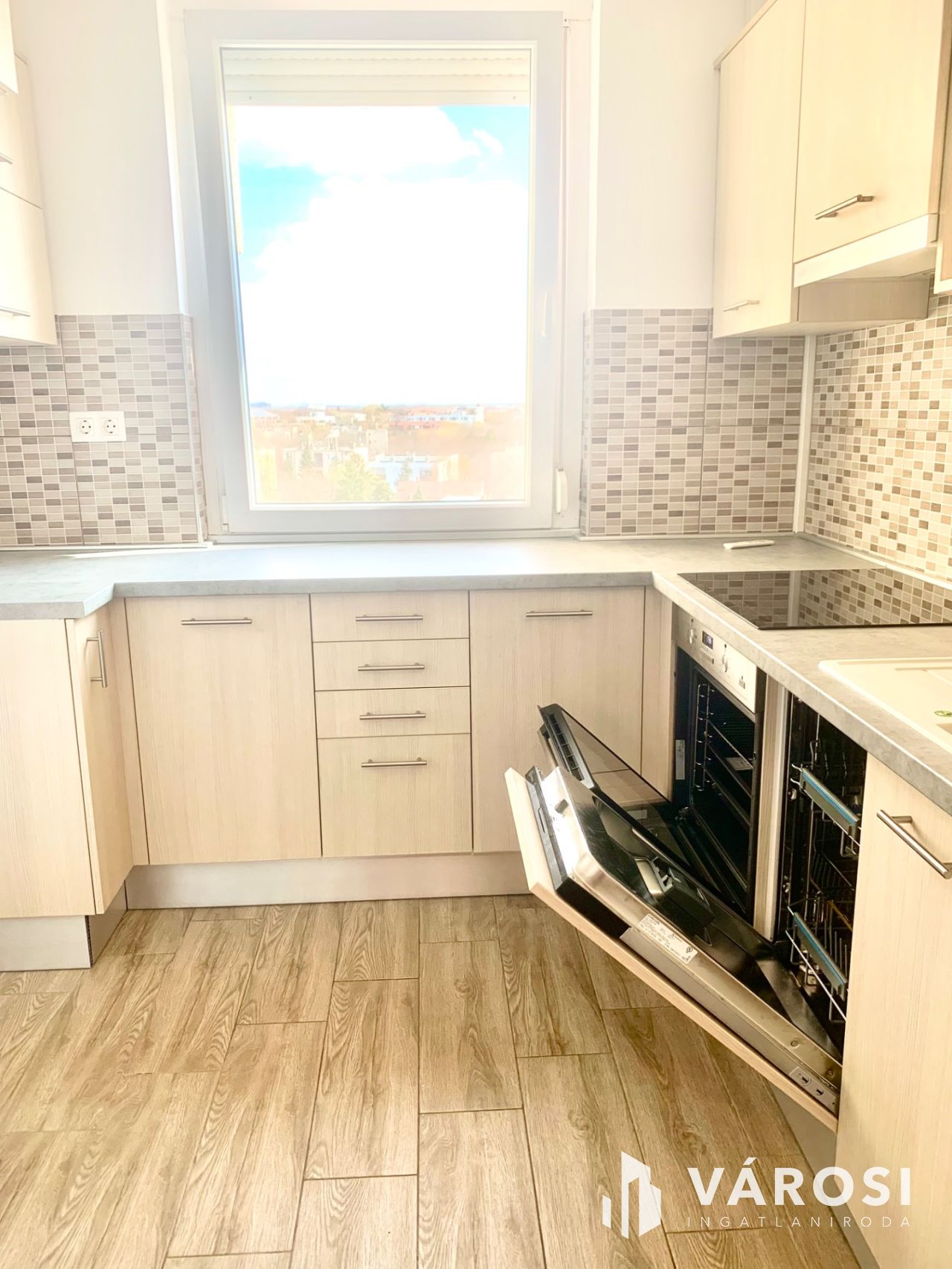 Debrecen közkedvelt városrészében, Újkertben , Egyetemek közelében kínálunk eladásra egy 8. emeleti, teljesen felújított, 60 m²-es,klimás panel lakást,melyben fellelhető a modern konyha mellett egy kellemes méretű étkező is.