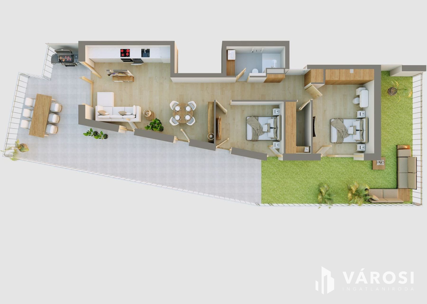 - Modern kialakítás: praktikusan tervezett terek, világos helyiségek – ideális egyedülállóknak, pároknak vagy kis családnak