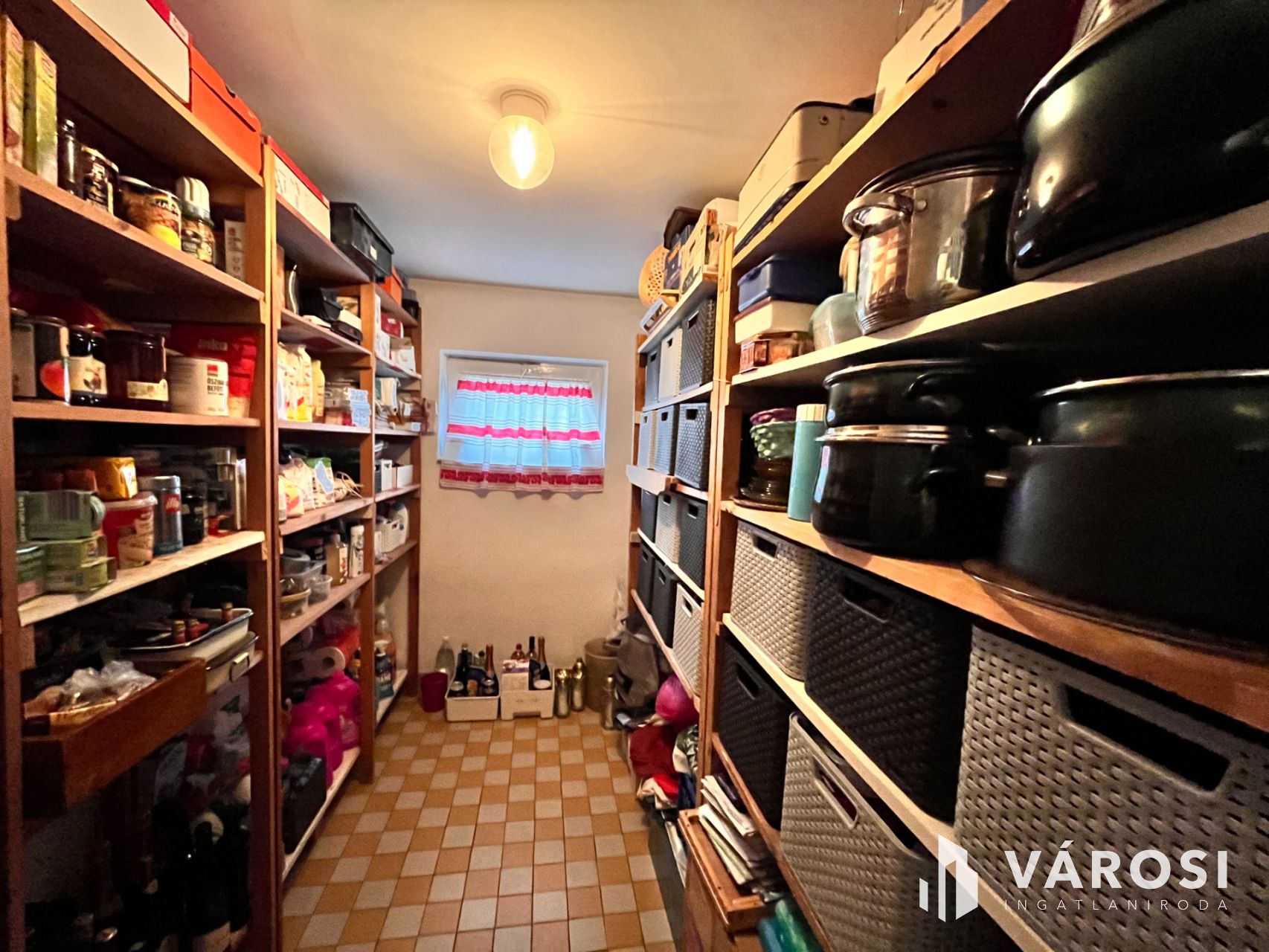 Az alsó szint ablakos helyiségekkel (magas belmagasság), tároló, mosókonyha / nyárikonyha, kamra is helyet kapott