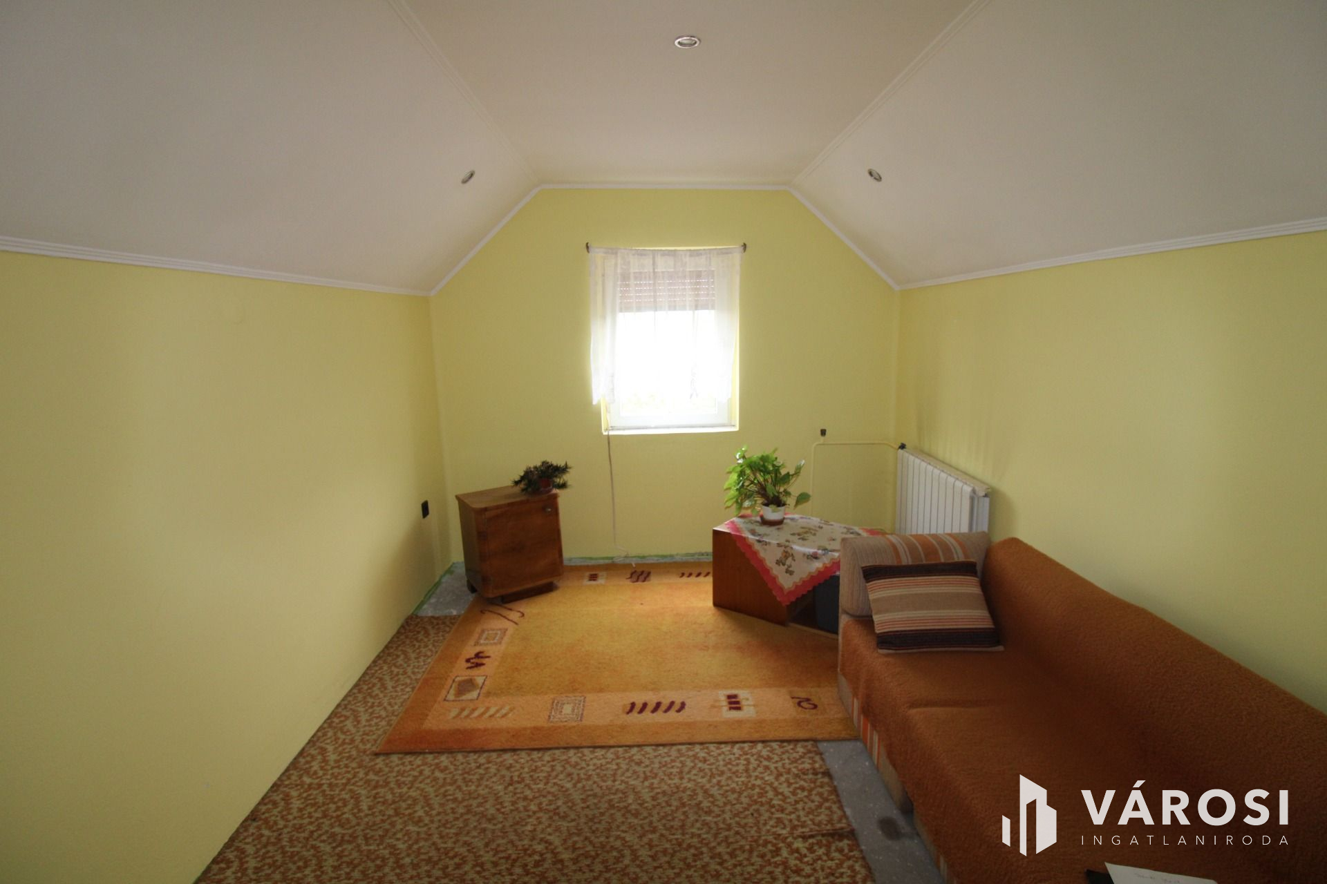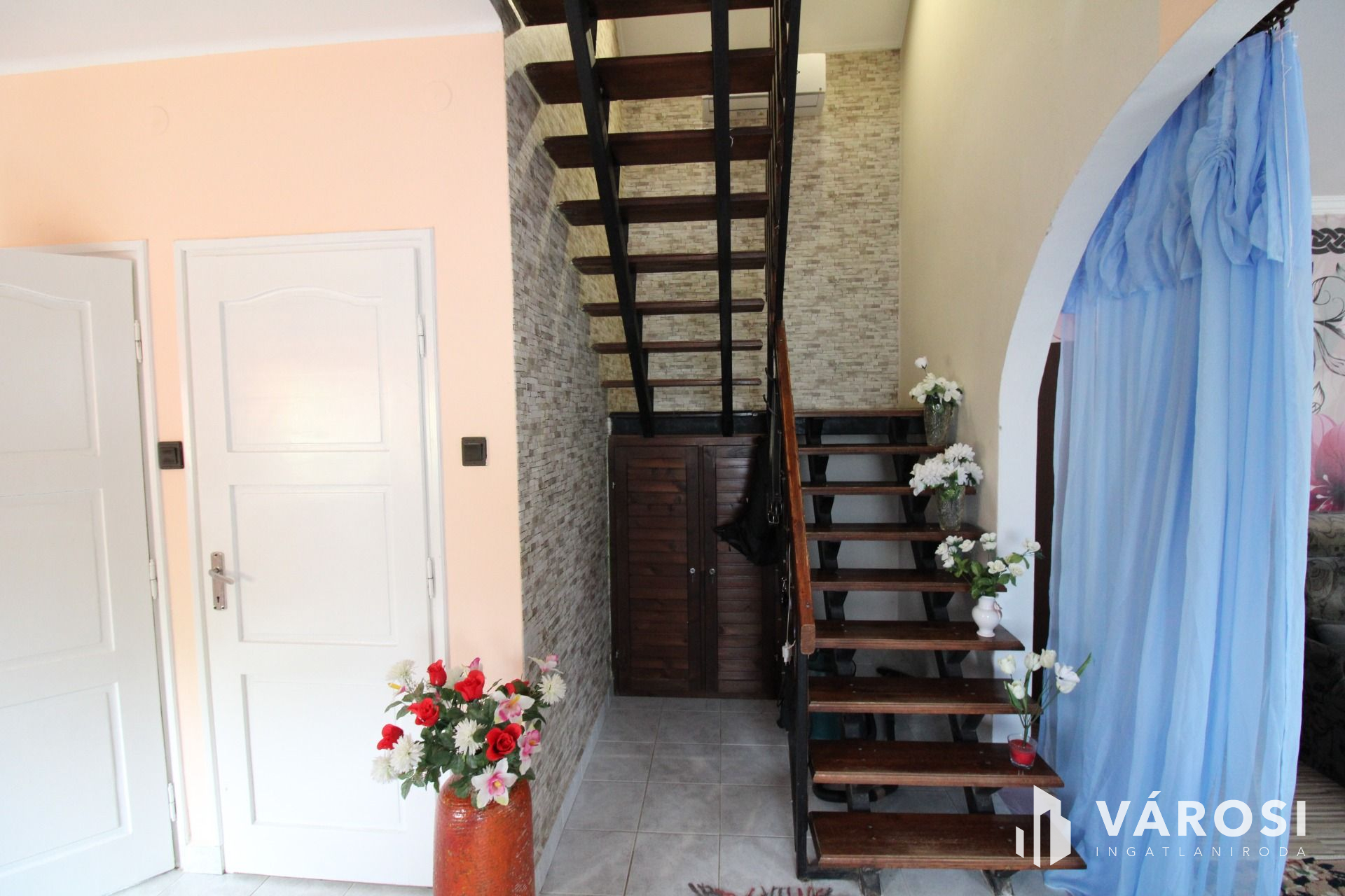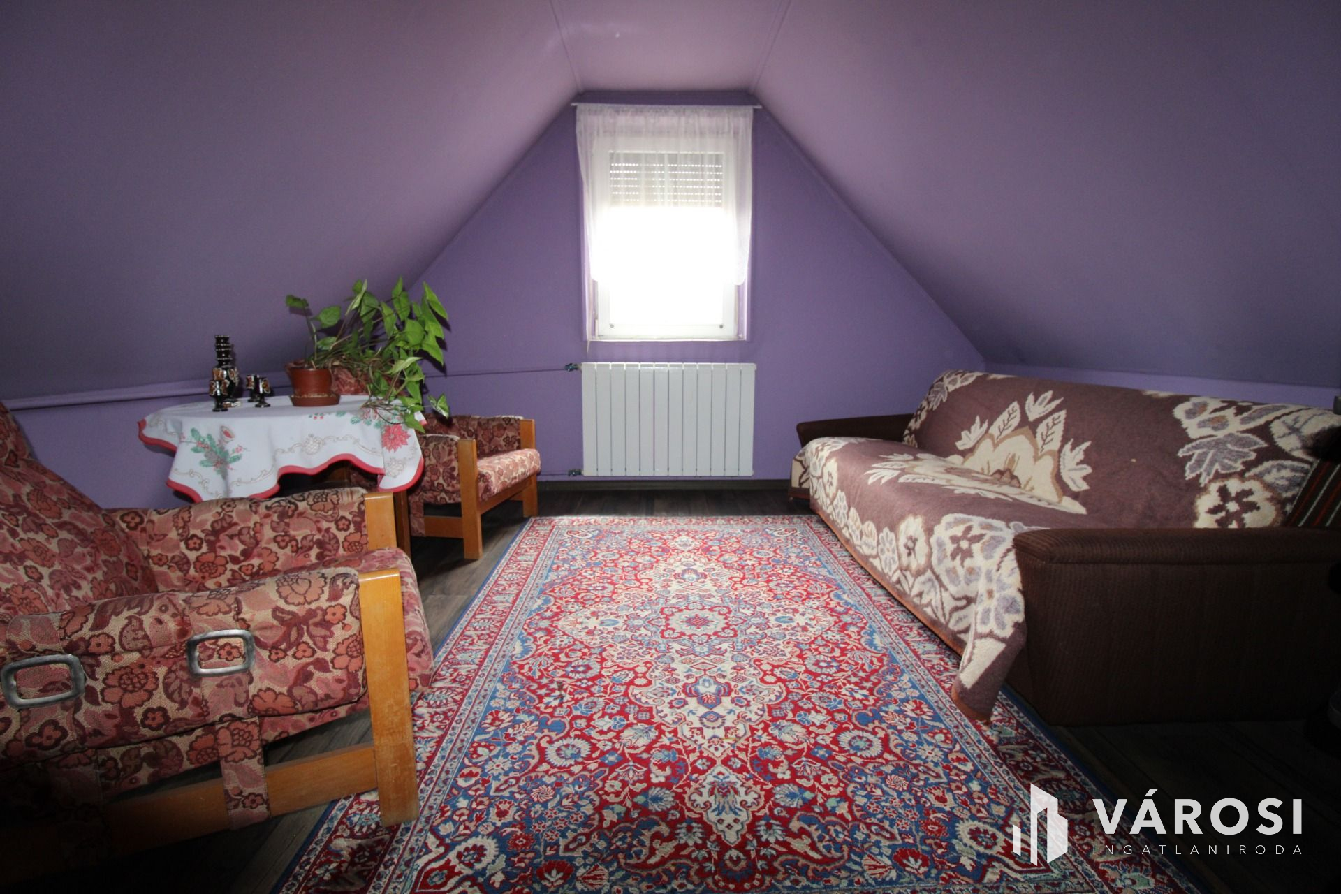 Eladó Tótkomlós városában, egy kertvárosias környezetben fekvő családi téglaház. A kétszintes ingatlan 1390 m²-es telken helyezkedik el, összesen 98 m² laktérrel rendelkezik. A házba belépve egy impozáns méretű amerikai-konyhás nappaliba érünk, mellyel szemben egy tágas, kellemes méretű szoba nyílik. A földszinten külön WC és egy sarokkádas fürdőszoba, valamint a konyha melletti spájzból juthatunk a garázsba. Az emeleten három kisebb méretű szobácska található, melyek lamináltpadlóval burkoltak az egyikből pedig egy tágas erkély nyílik. A falazat és a tetőszerkezet jó állapotú, a villamoshálózat felújítása megtörtént. Az udvarban fúrtkút található, valamint biztosított az udvari gépjárműbeálló lehetőség is.