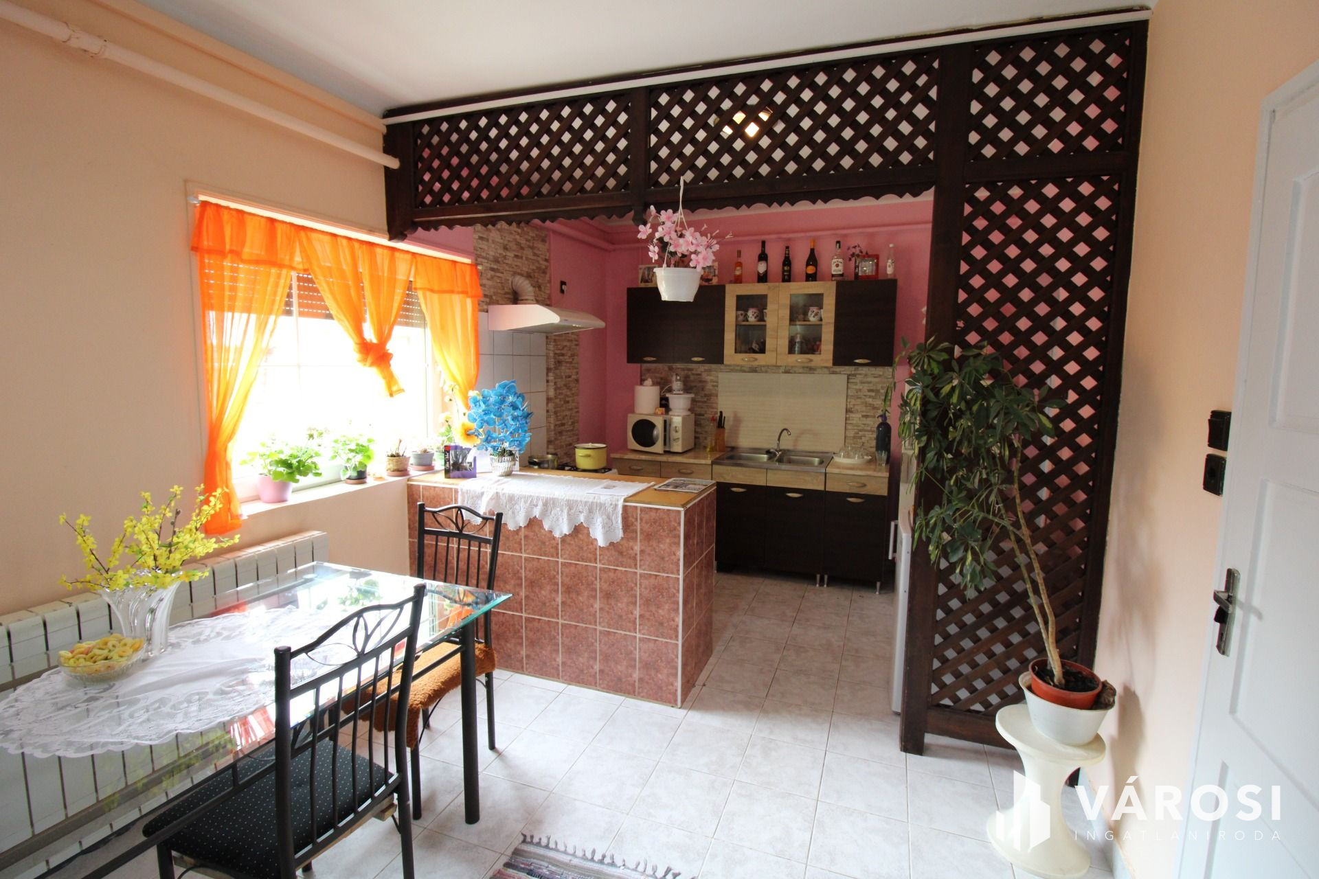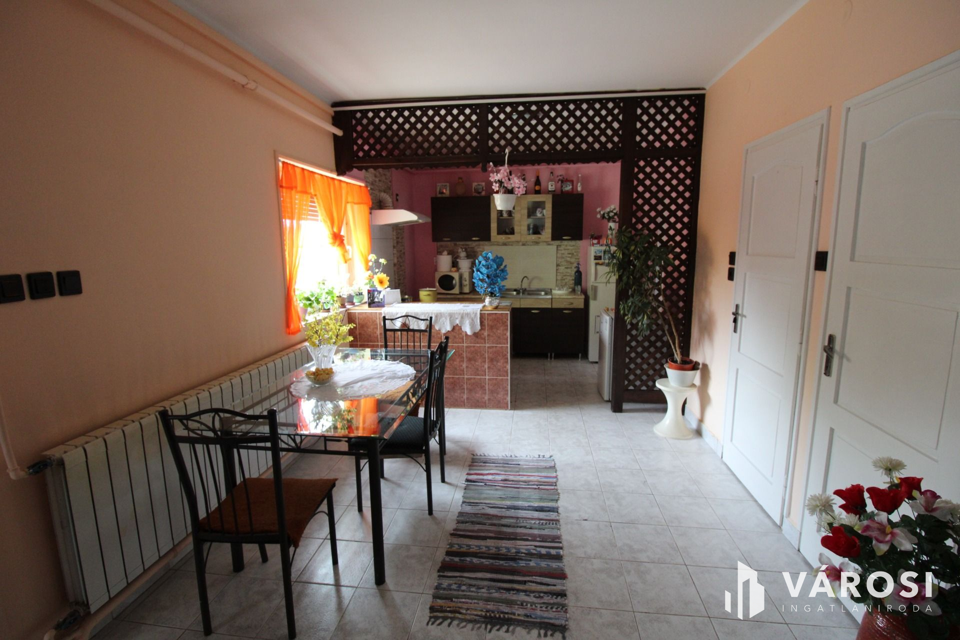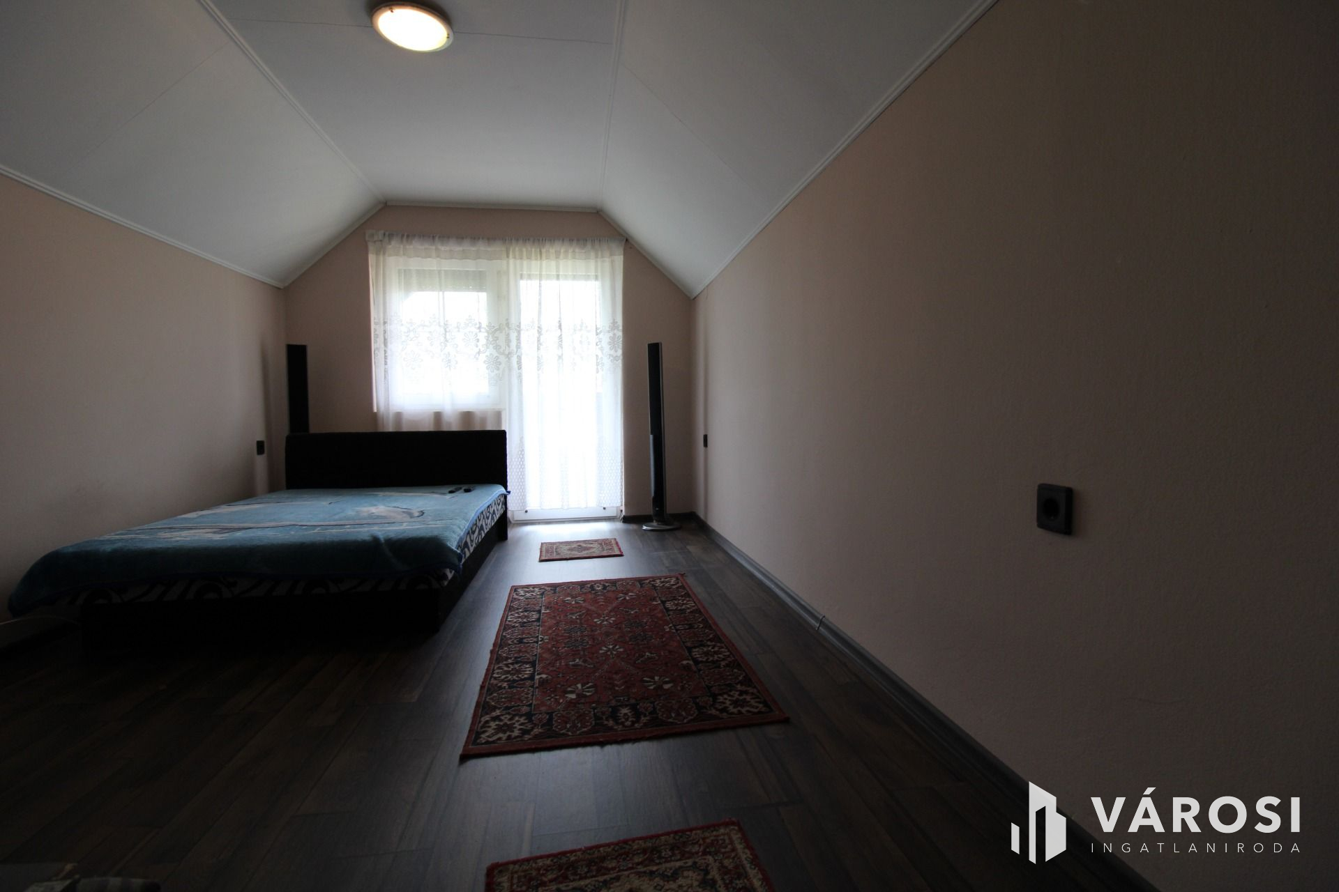 Eladó Tótkomlós városában, egy kertvárosias környezetben fekvő családi téglaház. A kétszintes ingatlan 1390 m²-es telken helyezkedik el, összesen 98 m² laktérrel rendelkezik. A házba belépve egy impozáns méretű amerikai-konyhás nappaliba érünk, mellyel szemben egy tágas, kellemes méretű szoba nyílik. A földszinten külön WC és egy sarokkádas fürdőszoba, valamint a konyha melletti spájzból juthatunk a garázsba. Az emeleten három kisebb méretű szobácska található, melyek lamináltpadlóval burkoltak az egyikből pedig egy tágas erkély nyílik. A falazat és a tetőszerkezet jó állapotú, a villamoshálózat felújítása megtörtént. Az udvarban fúrtkút található, valamint biztosított az udvari gépjárműbeálló lehetőség is.