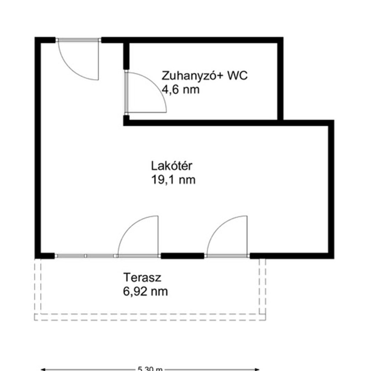Ez a lakás a társasház második emeletén található (A74), 27 nm hasznos alapterülettel rendelkezik. Az ingatlan helyiségei: lakószoba, zuhanyzó, wc, terasz.