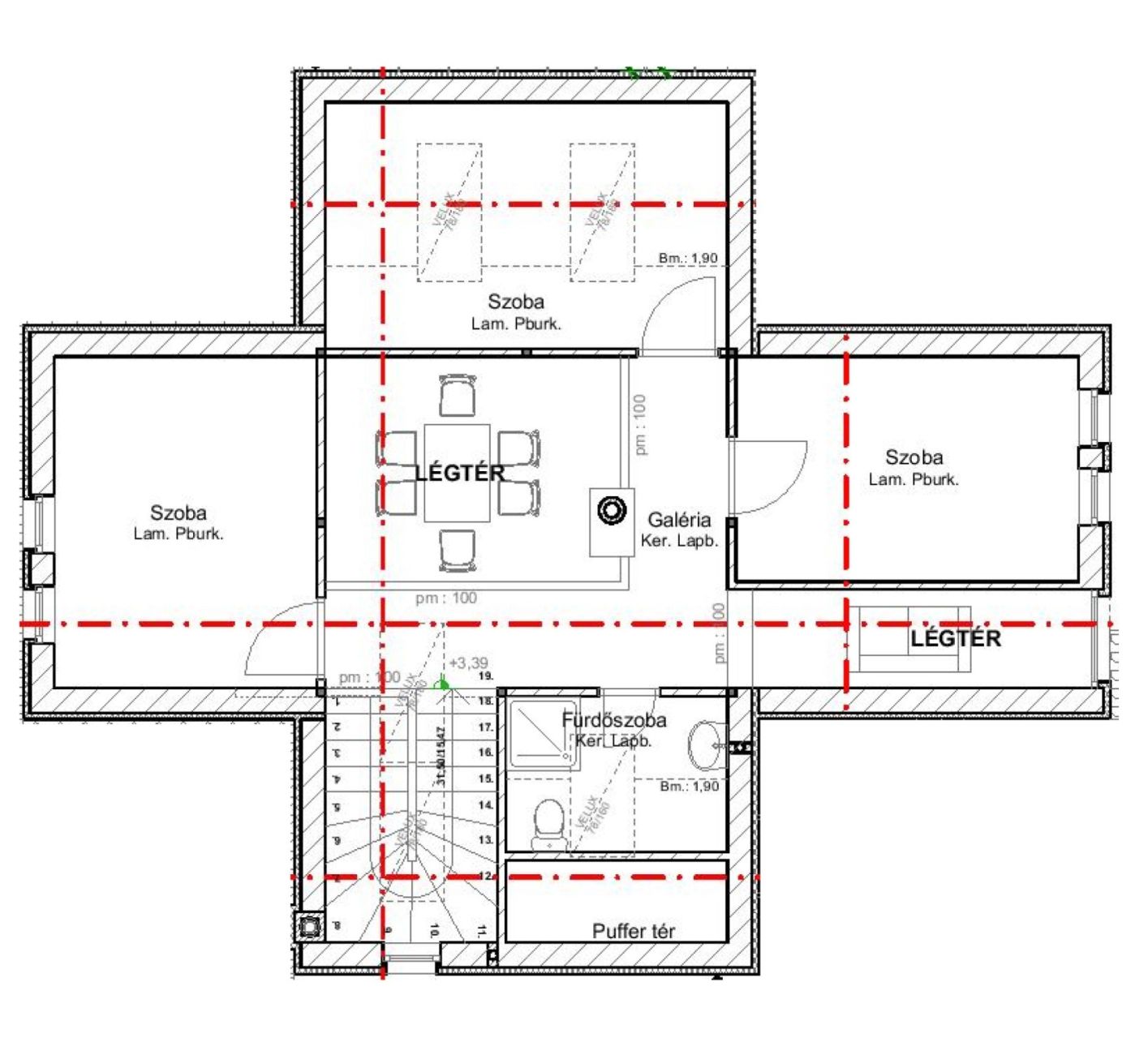 - belső kétszintes galériával