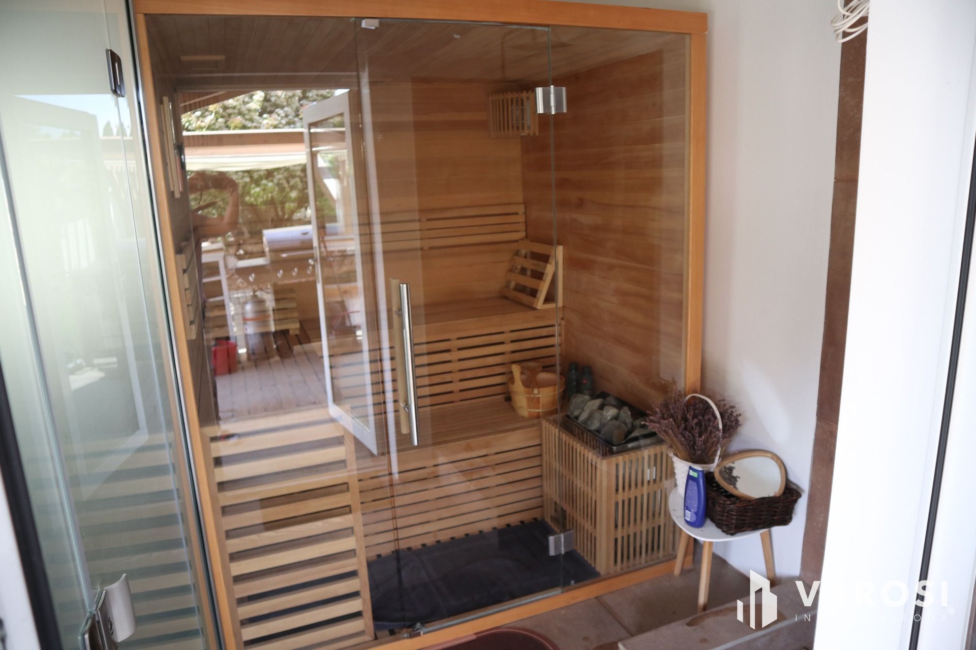A lakók kényelmét szolgálja továbbá a fedett grillterasz, valamint fűthető úszómedence, és szauna, hogy nap mint nap kihasználhassa a ház nyújtotta lehetőségeket a pihenésre és kikapcsolódásra.