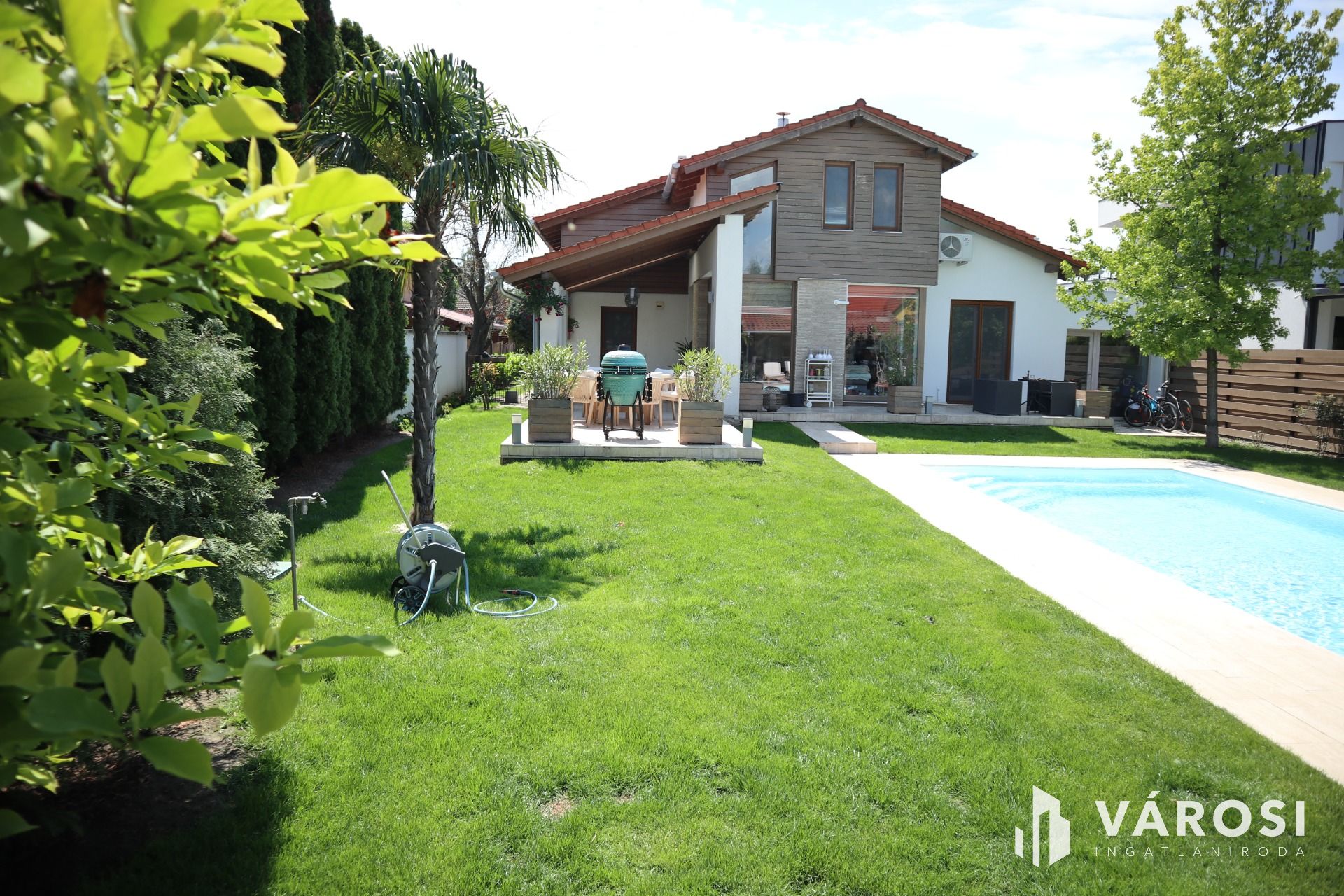 - parkosított udvar + grillező + kert világítás