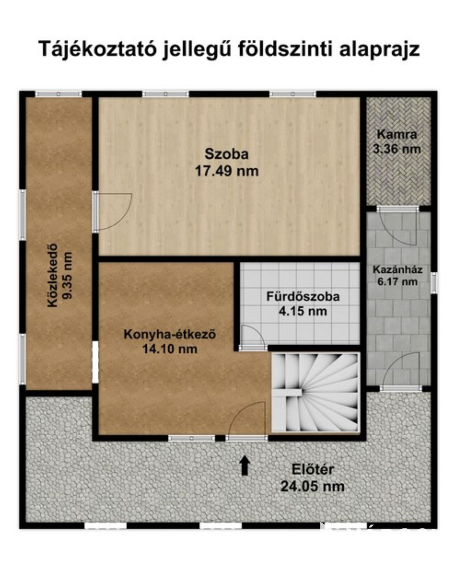 - a földszinten: étkező-konyha, hatalmas szoba ( nappalinak is megfelelő) fürdő, közlekedő, kamra, kazánház