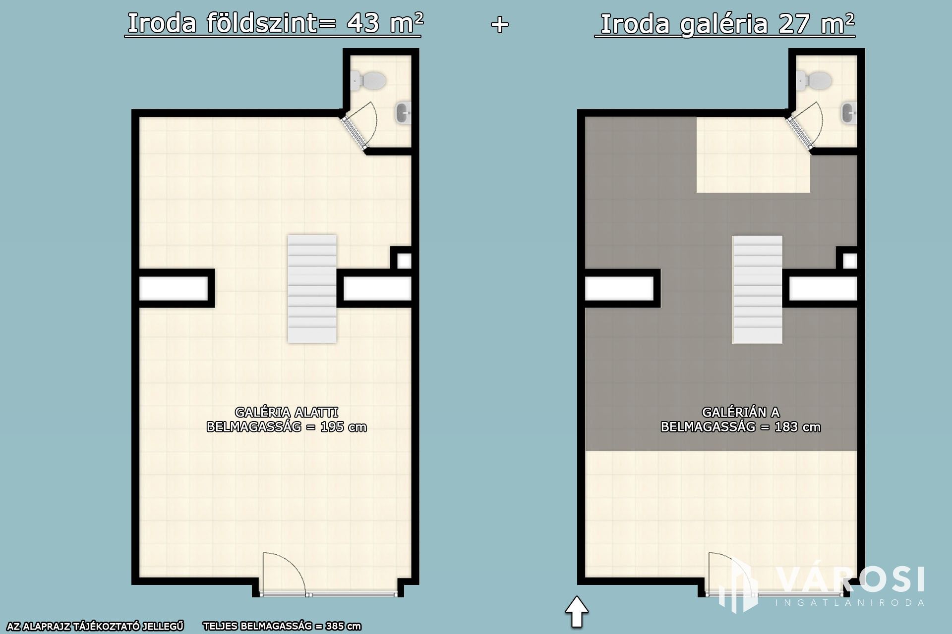 Utcai bejáratos, fém galériás iroda eladó