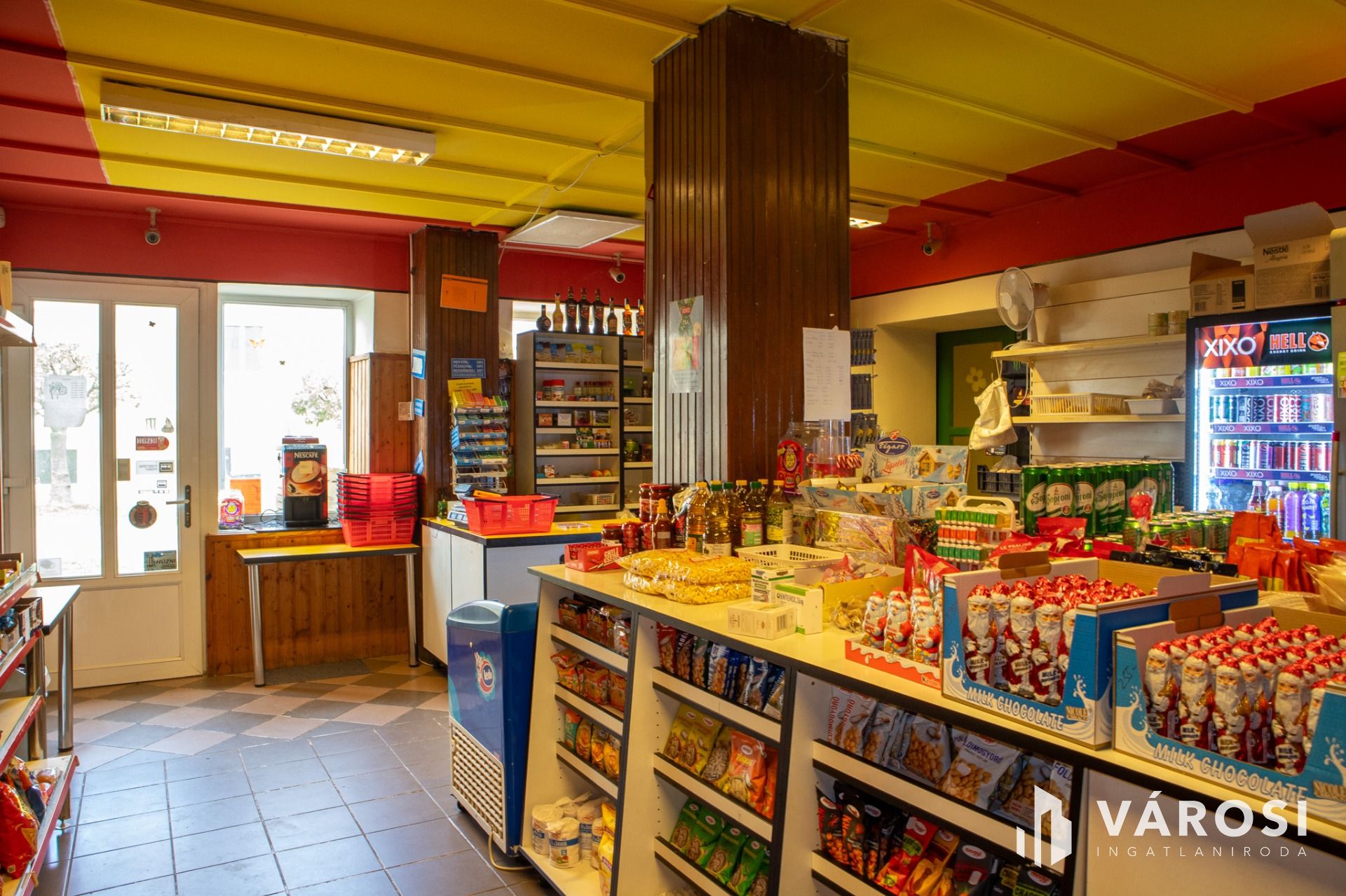 Az ingatlan és a vételár része a leírás elején megemlített élelmiszerbolt, amely jelenleg is működik a tulajdonos által. Az üzlet egy része a malom épületében, a többi a malom mögötti melléképület földszinti részén helyezkedik el. Az egységnek, az előírásoknak megfelelően több bejárata van, a vásárlói, személyi bejáraton kívül a hátsó, udvarra néző bejárat, illetve az utcafronti, árupakolásra használt, szélesebb bejárat. Az üzlet mérete és elosztása más tevékenységre is könnyen alkalmassá tehető, akár rövidebb időn belül. Az ingatlanban a főbb közművek mind megtalálhatók, a bolt fűtése kandallós fűtéssel van megoldva.