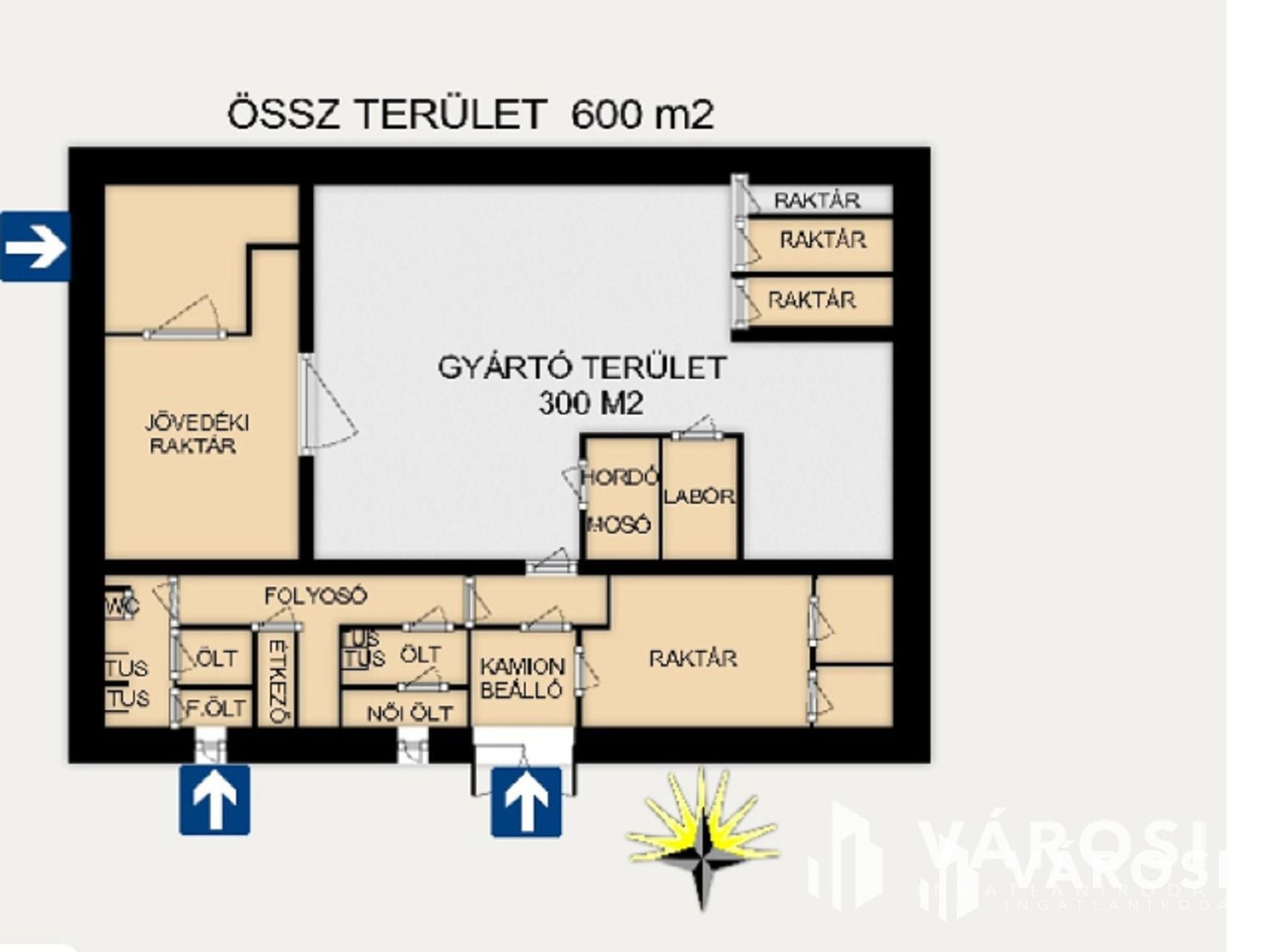 3 m, ipari padló a teljes területen, ami összesen 630 m2. Gázkazán