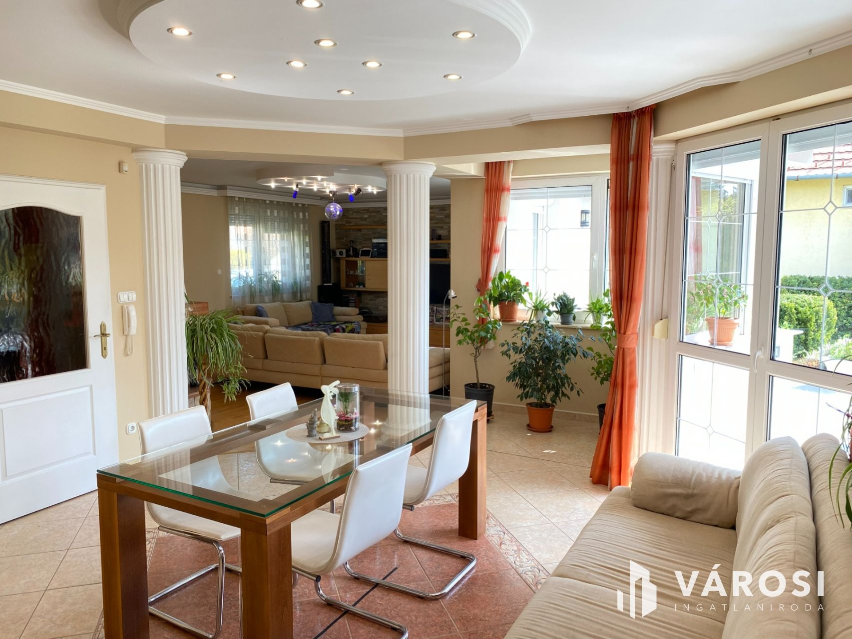 Az ingatlan összesen 279 m² alapterületű, amely magában foglal egy dupla garázst, amely elektromos kapuval van ellátva. A telek 2004 m²-es, gondozott, parkosított. A ház tégla építésű, a falak szigetelése 10 cm, a tető cserép borítású. A szobák radiátoros fűtéssel rendelkeznek, míg a többi helyiségben padlófűtés biztosítja a komfortot. A nyílászárók duplafalúak, a burkolatok jó minőségűek, az otthon összességében karbantartott, igényes állapotú.