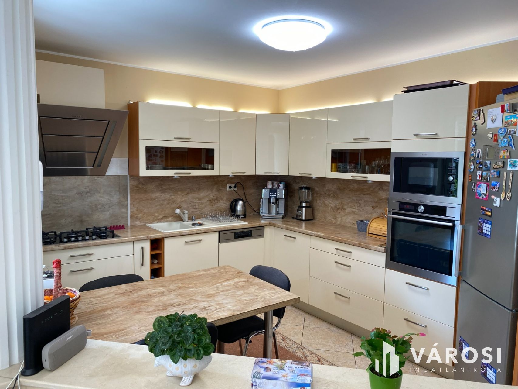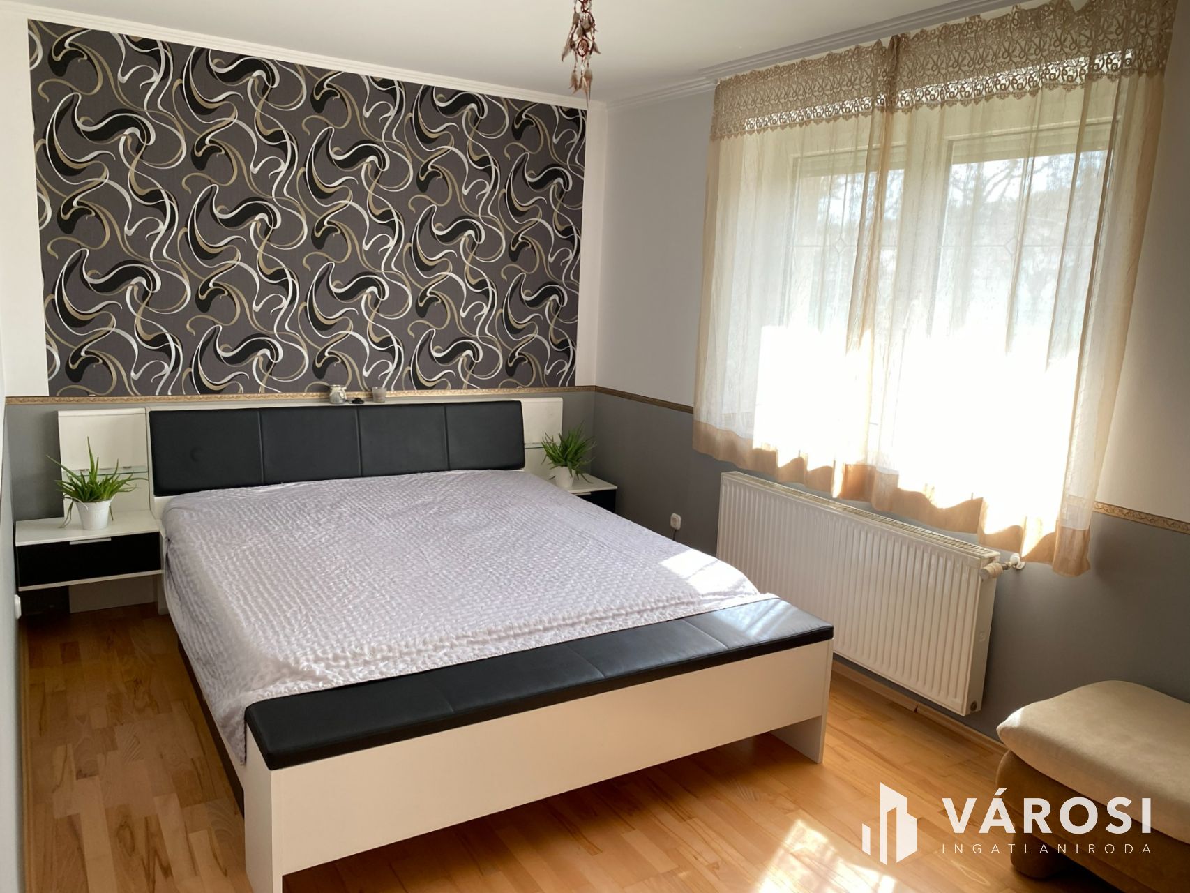 A szobák laminált parketta, a többi helység kerámia burkolatokkal rendelkezik. A házhoz egy nagy, kerámialappal burkolt terasz kapcsolódik, amely közvetlen kapcsolatot teremt a kerttel, emellett praktikus és pihenésre is alkalmas. Automata öntözőrendszer, kerti pavilon, szerszámtároló, bográcsozási lehetőség és magaságyások is kialakításra kerültek. A teljes terület parkosított, rendezett.