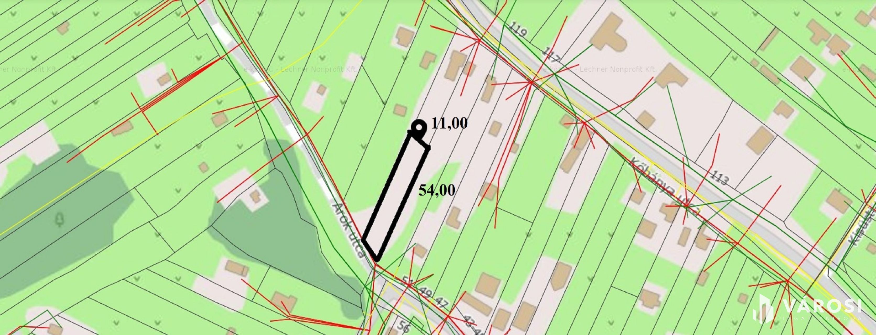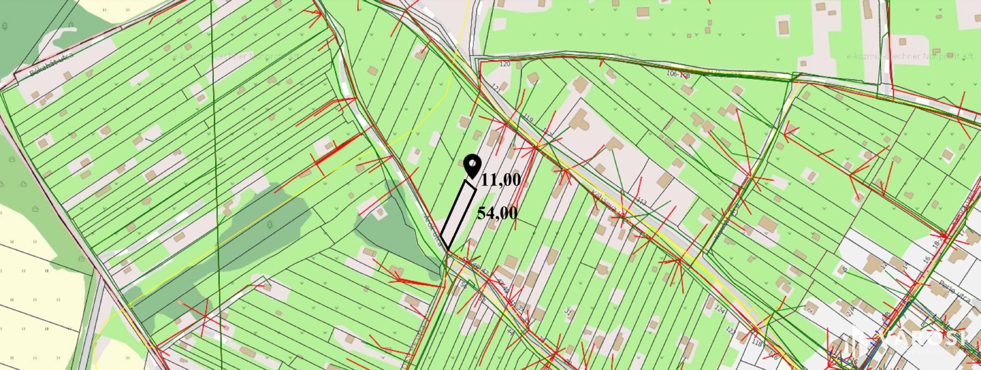 Egy nagyobb telek(1185nm) fele, melyet ügyvédi megosztási szerződéssel választottak szét.